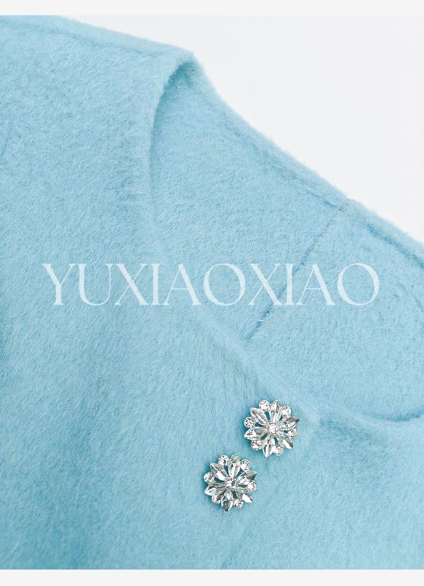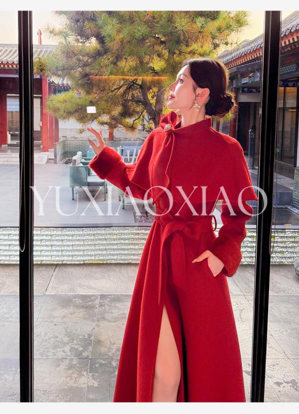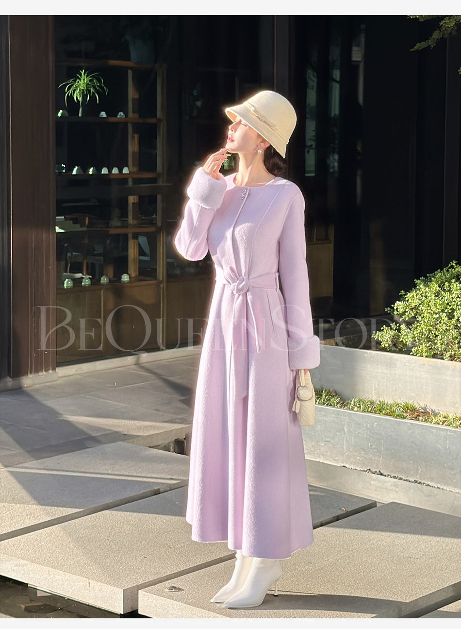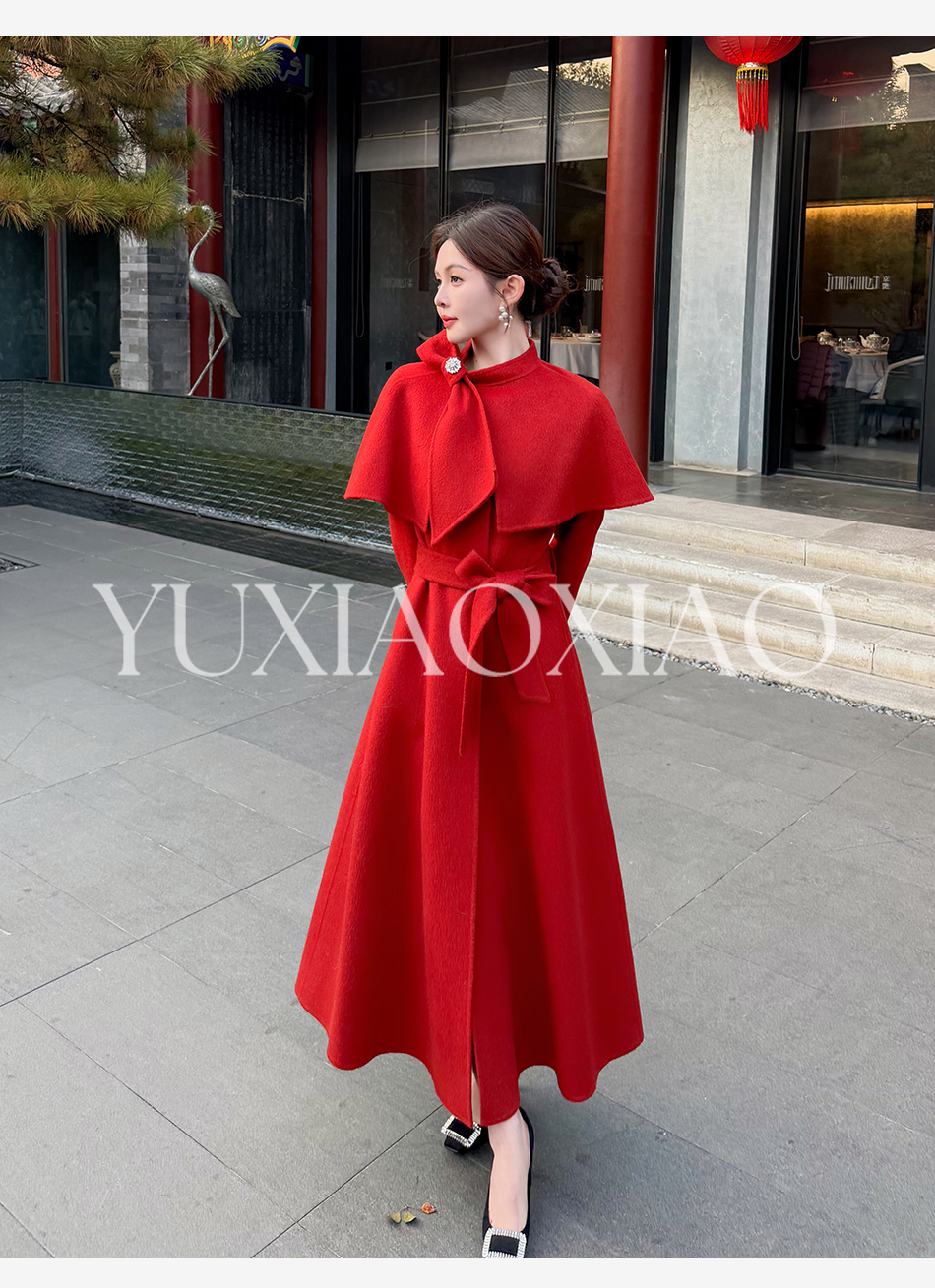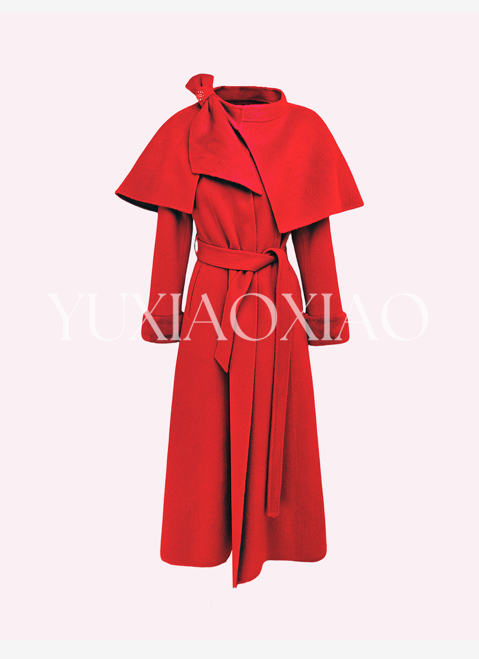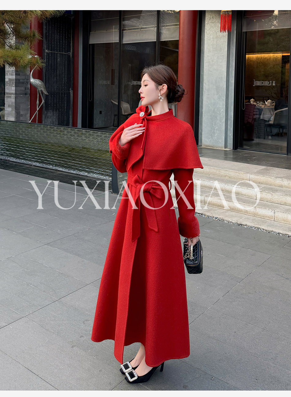 余潇潇【伊莎贝尔礼赞】轻奢100绵羊毛拼接水貂毛袖口A字双面呢大衣