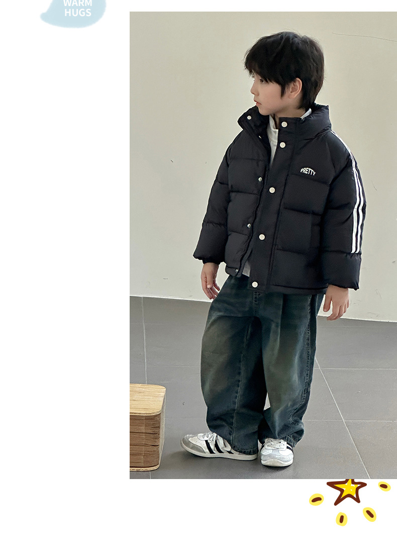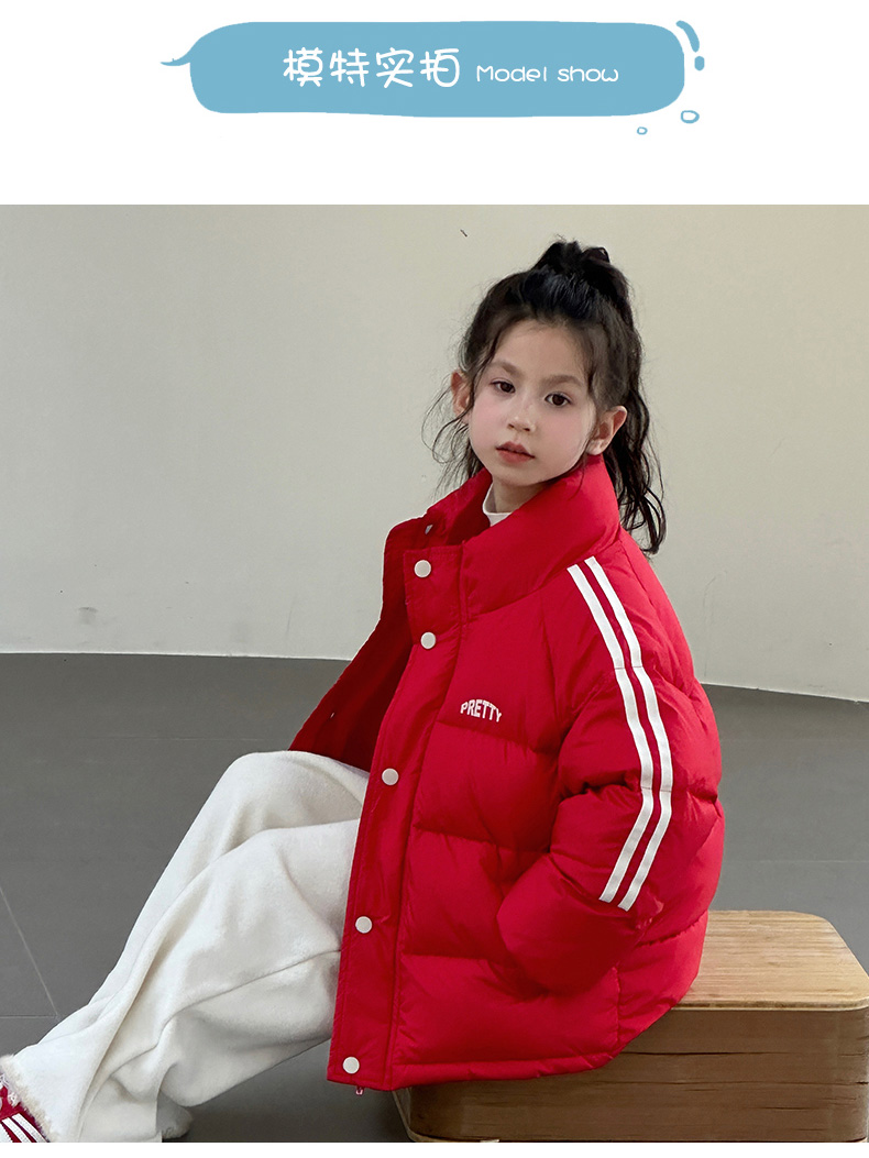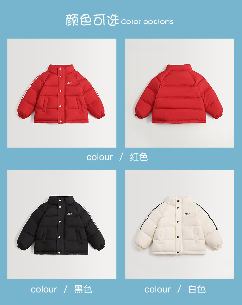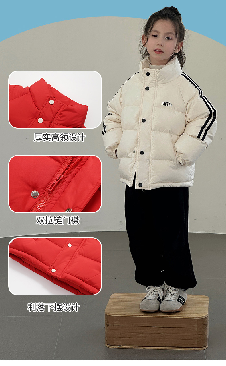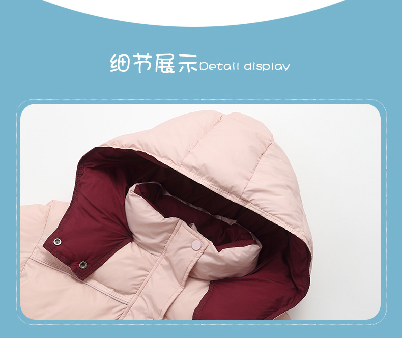 经典横条绗缝分格,百搭不出错!不跑绒不钻绒!一体连帽设计,有效避寒!性价比拉满~