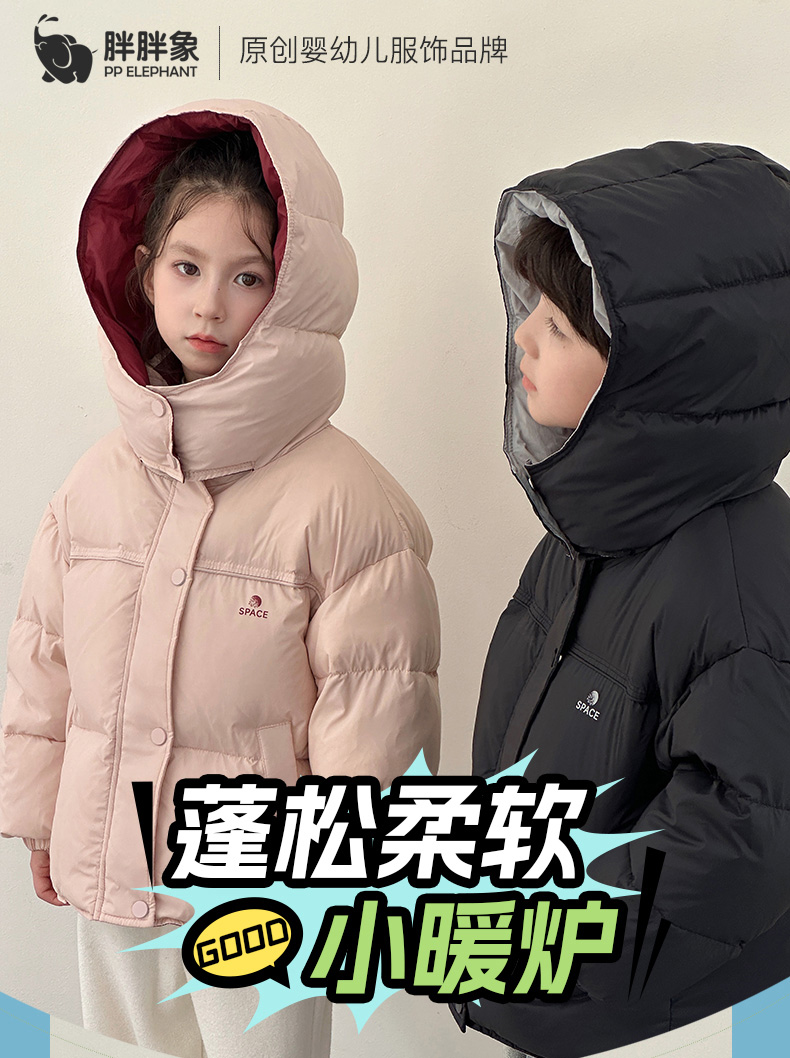 胖胖象上新啦‼️89起‼️填充新国标90绒‼️每件都带质检❗童装儿童羽绒服男童女童连帽加厚羽绒外套中大童秋冬韩版厚款聚
