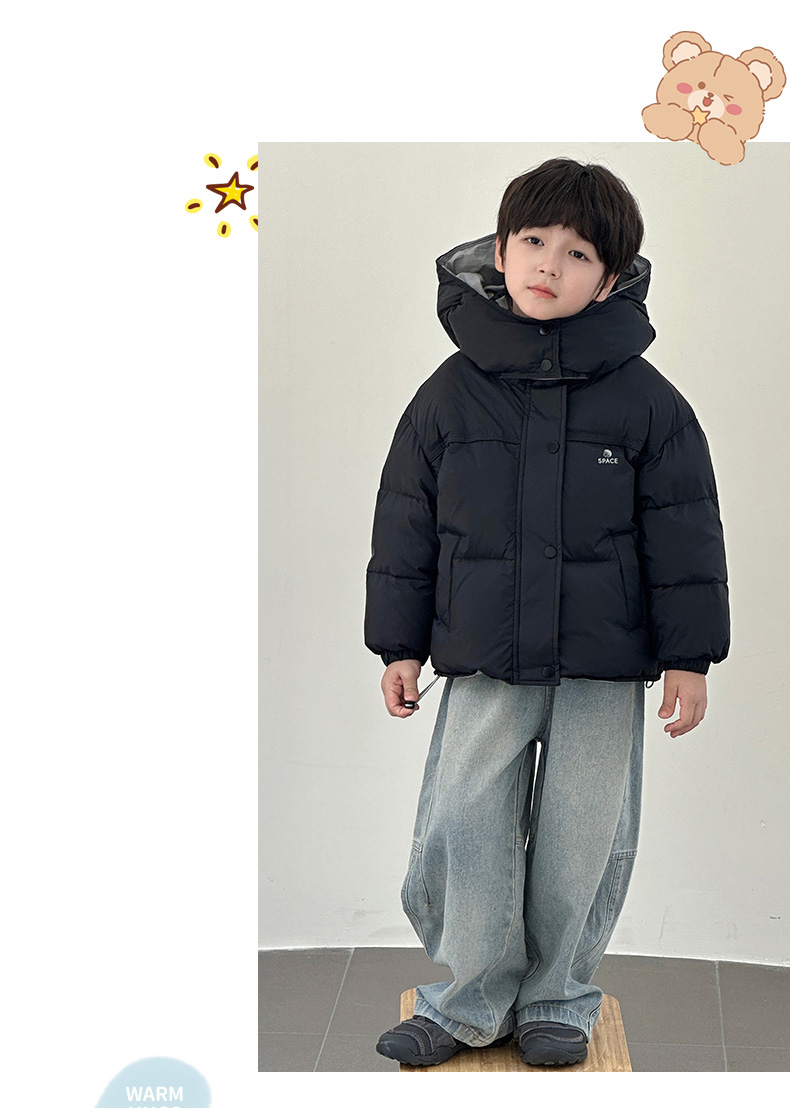 码段110-160【胖胖象】泡芙面包羽绒服,填充新国标90绒!韩版一体连帽!
