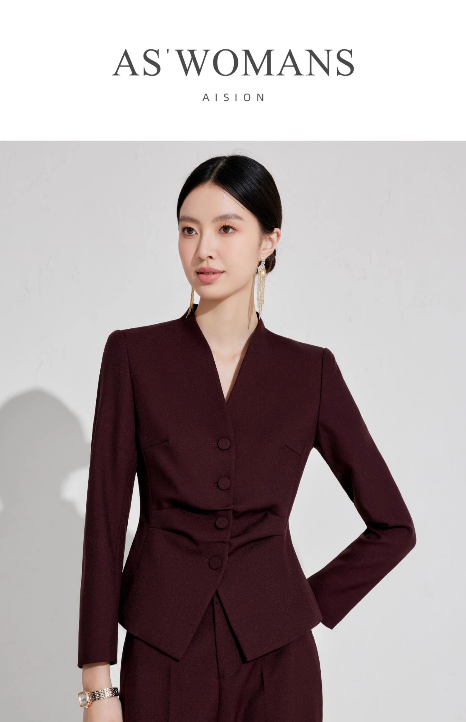 IWY/气质安可拉红西装套装女休闲显瘦直筒裤职业装正装工作服243052C1+WP022