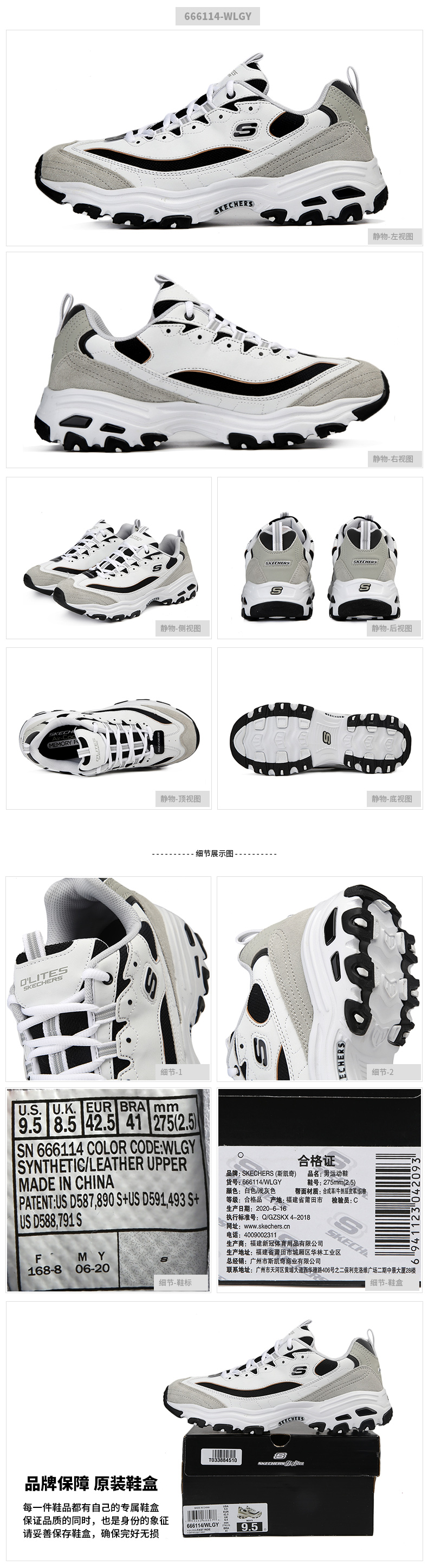 斯凯奇skechers熊猫鞋老爹鞋子男女同款休闲运动厚底增高复古黑色潮流666114-WLGY