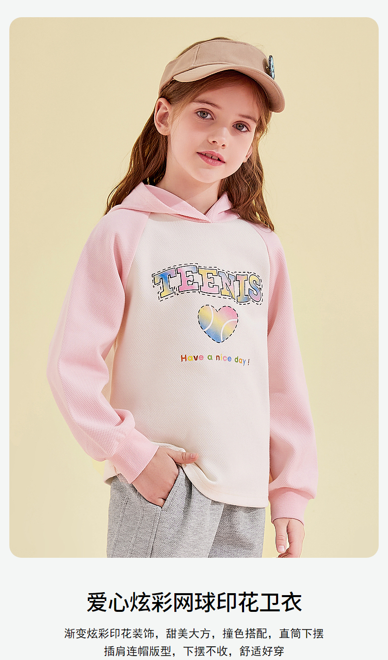 笛莎Deesha 女童卫衣2024新款时尚连帽印花卫衣