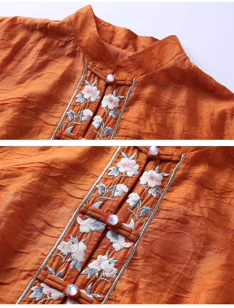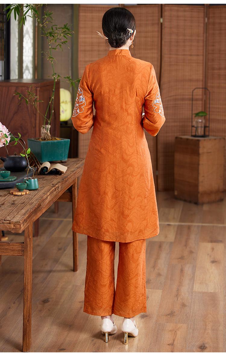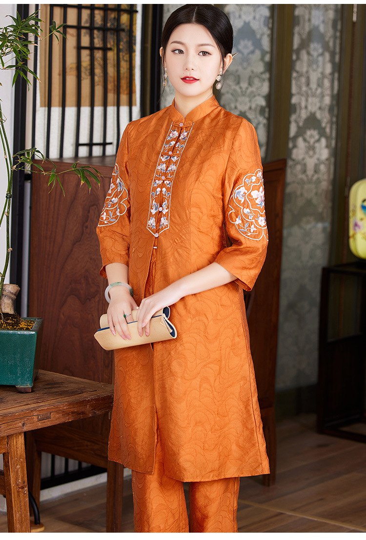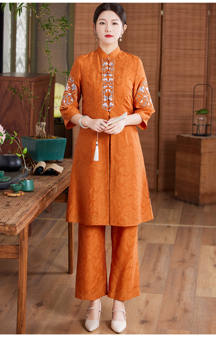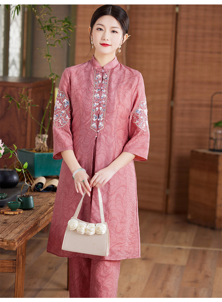 国风优雅,茶服中式绣花阔腿裤两件套KDS-2236