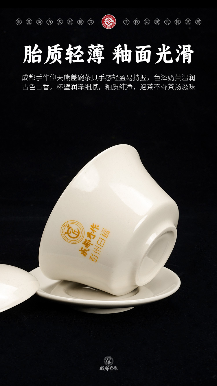 【产品品名】成都手作彭州白瓷仰天熊盖碗