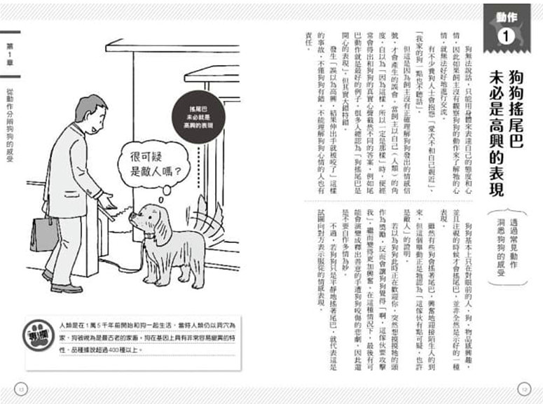 全書可分成「分辨狗狗的感受」、「狗狗的身心」與「公狗與母狗的行為學」三大面向,幫助飼主讀懂家中毛孩的內心OS,打造無壓力的飼育環境,贏得狗狗們的景仰與信賴!