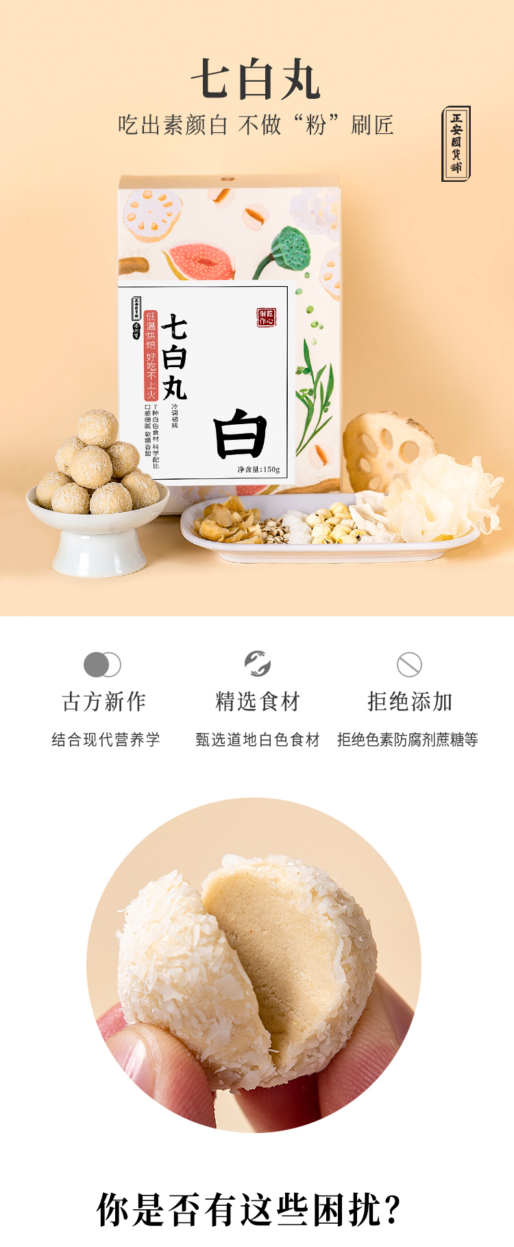 正安国货铺 七白丸 七种白色食材合理搭配 口感细腻椰香可口【有效期到1月29日,介意慎拍】