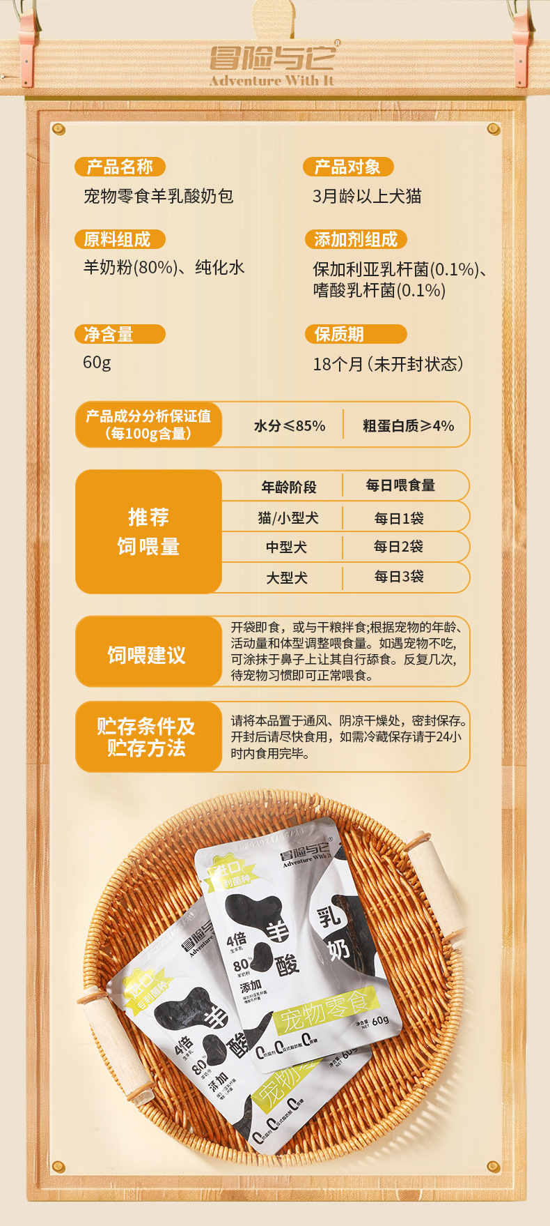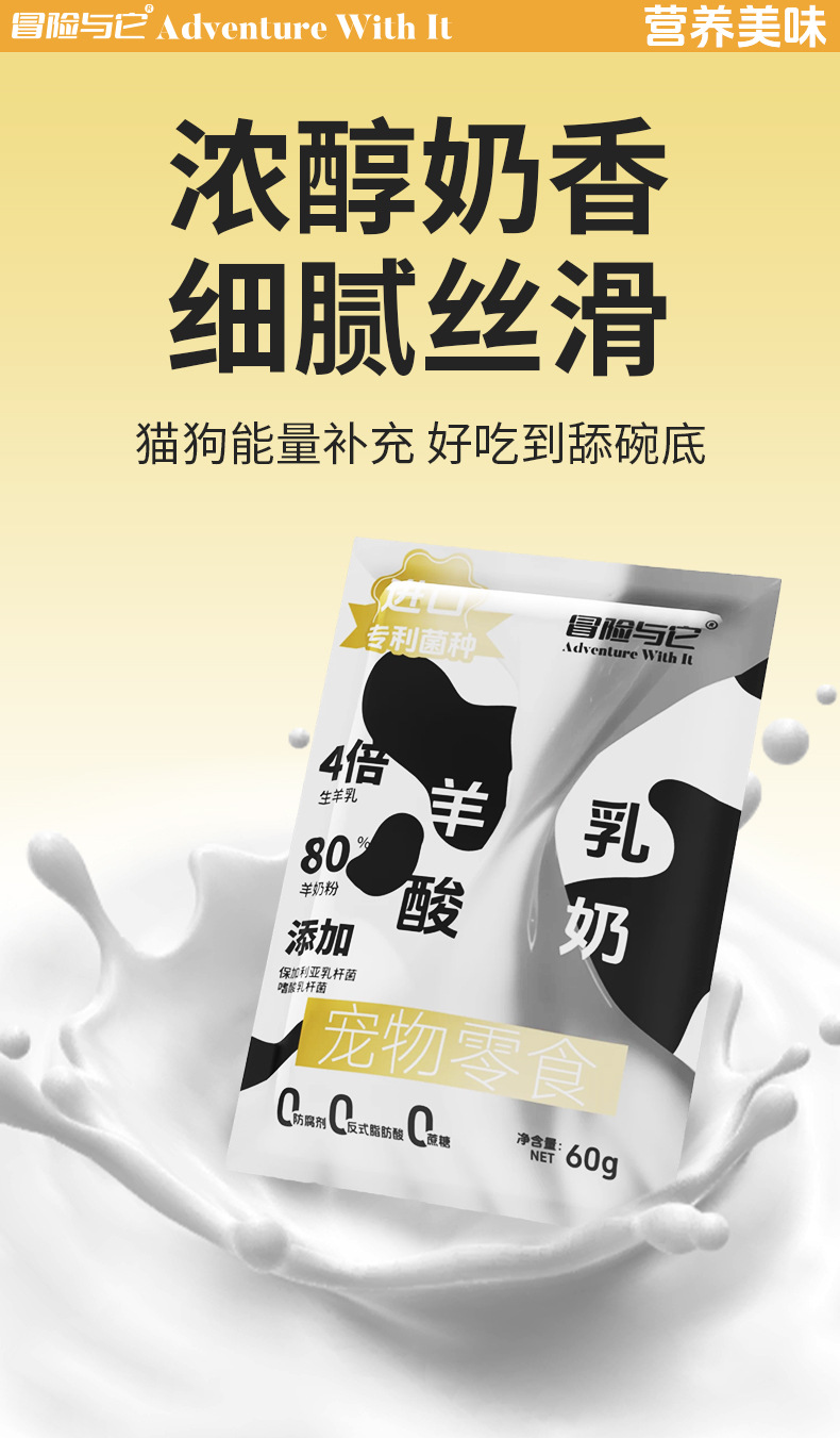 【电商新零售爆品推荐!】冒险与它宠物零食羊乳酸奶包60g 狗狗猫咪补水羊奶幼犬猫补充营养