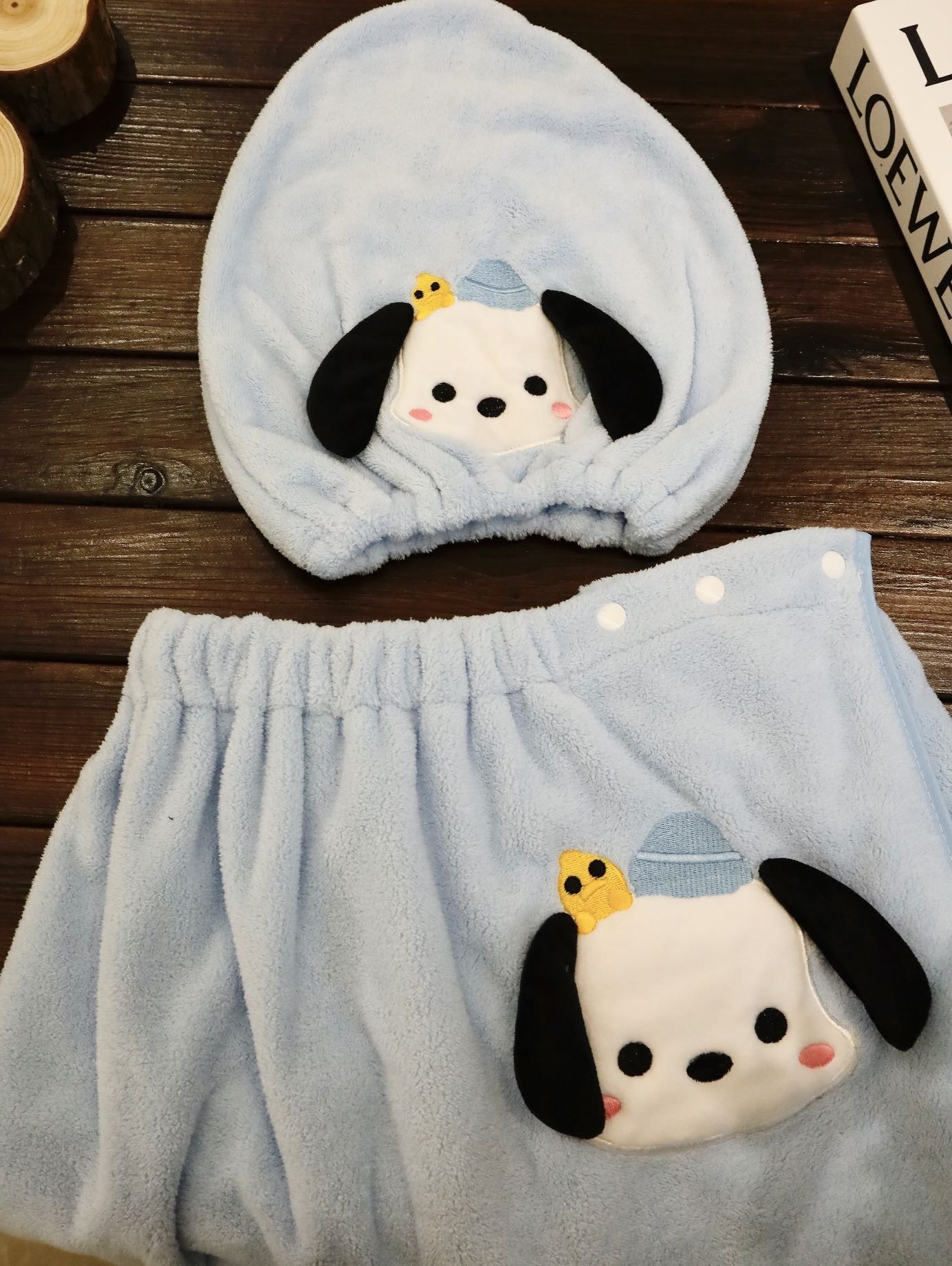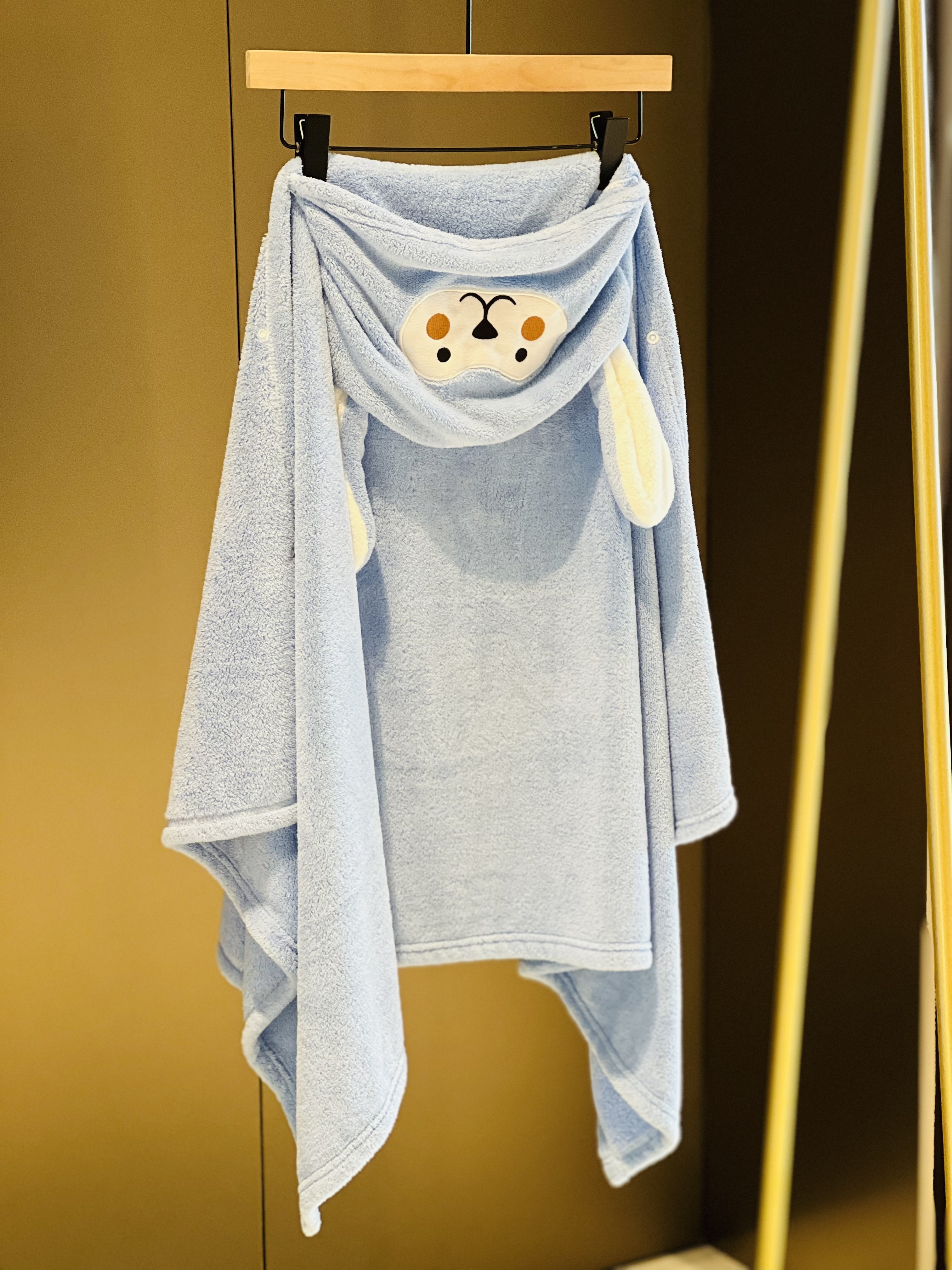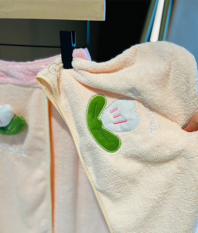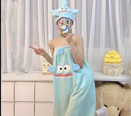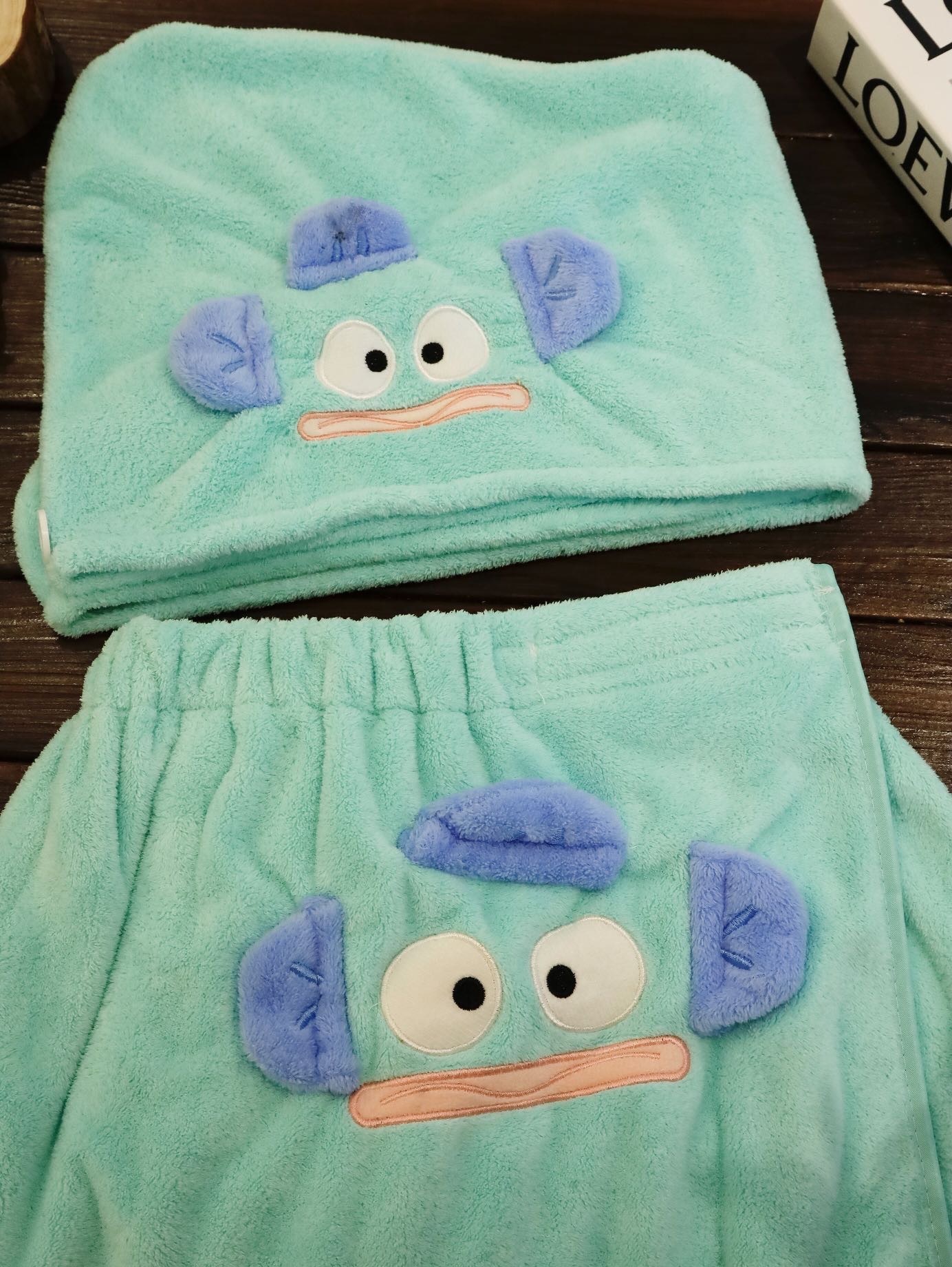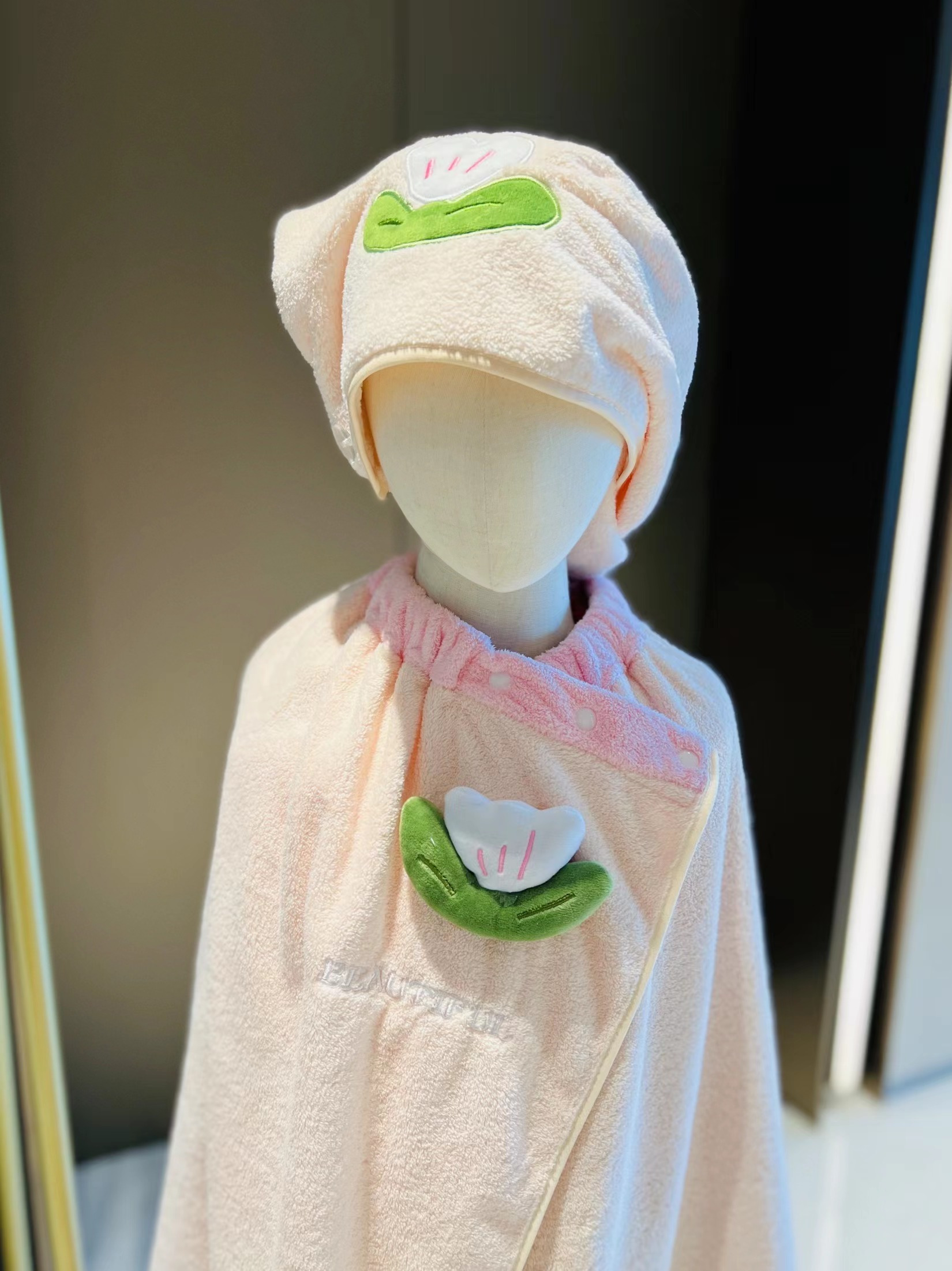 成人款是浴巾&浴帽套装,尺寸135*74cm。