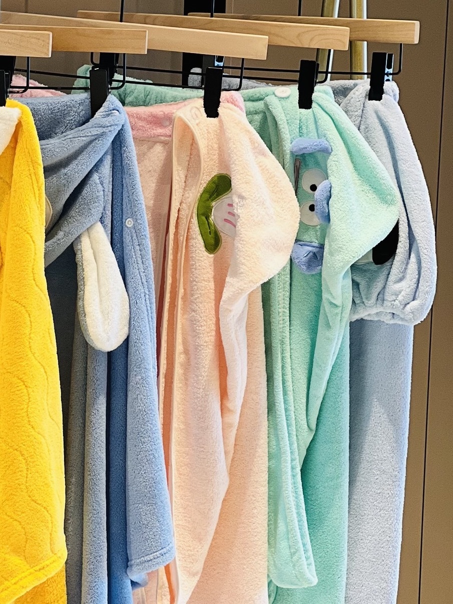 主要这么可爱的浴巾,不仅有儿童款,还有妈妈款。太贴心了~