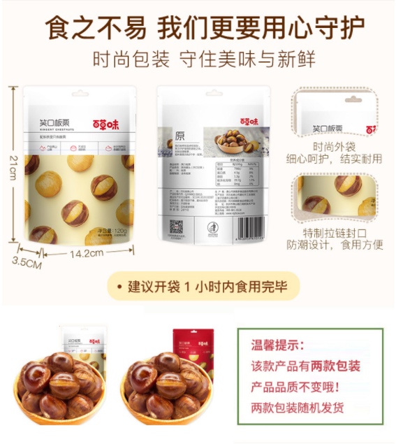 百草味 每日坚果炒货 笑口板栗 即食香糯 带壳熟栗子休闲零食特产开口甘栗 板栗120g/袋