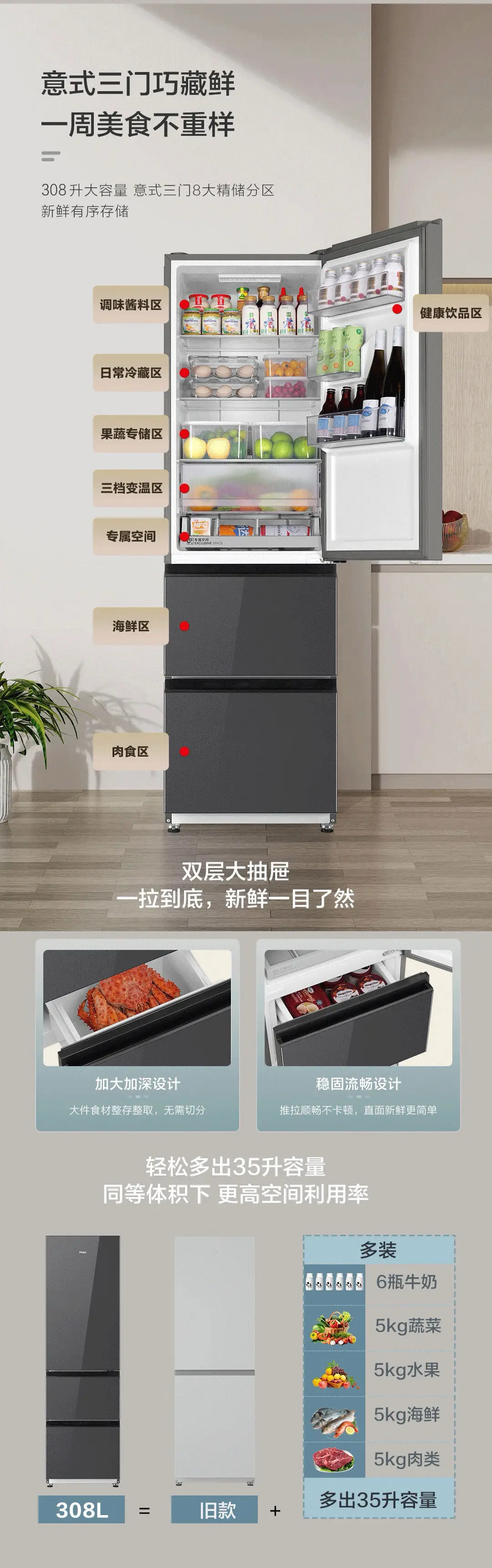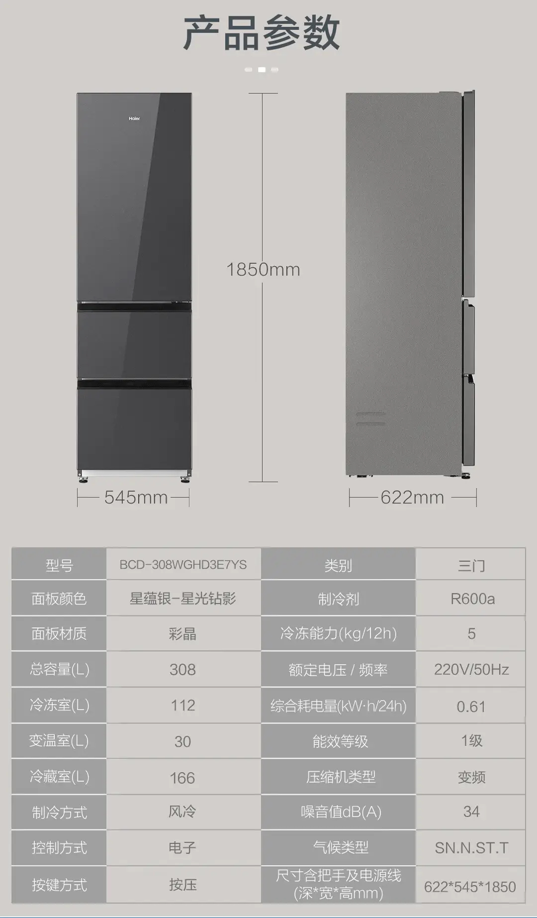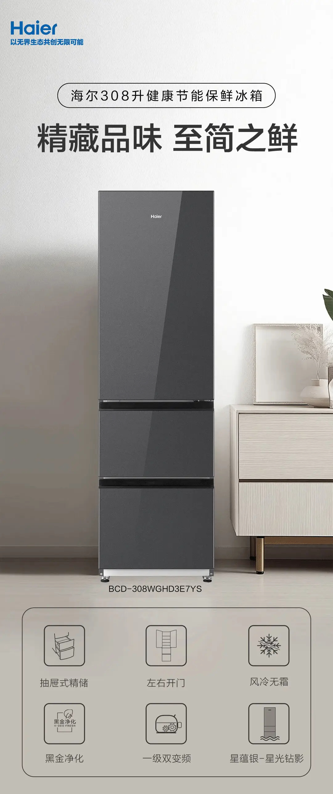 海尔(Haier)冰箱 BCD-308WGHD3E7YS