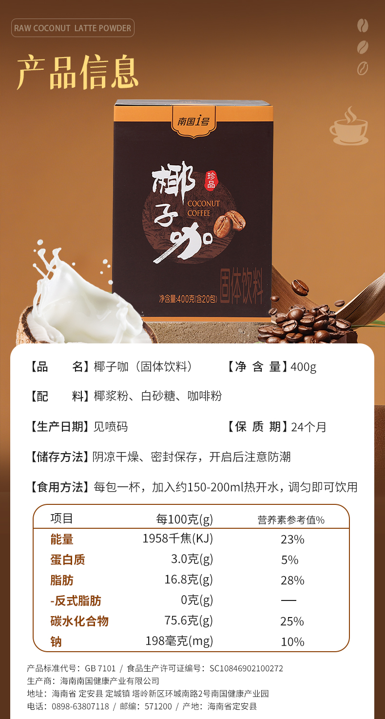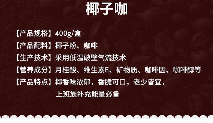 【南国特饮】南国椰子咖 400g/盒