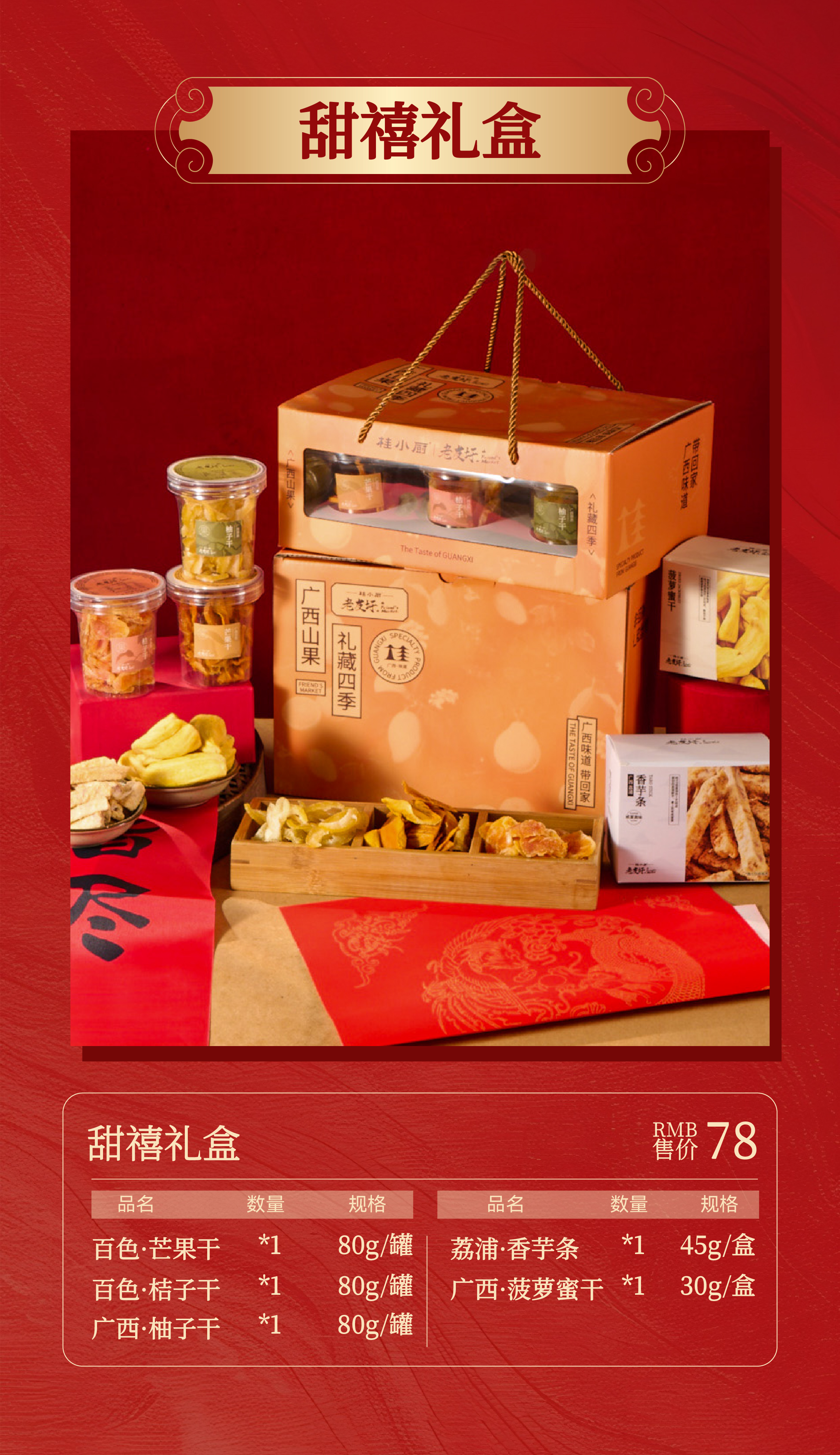 芒果干:80克/瓶 *1 广西菠萝蜜干:10克*3袋/盒