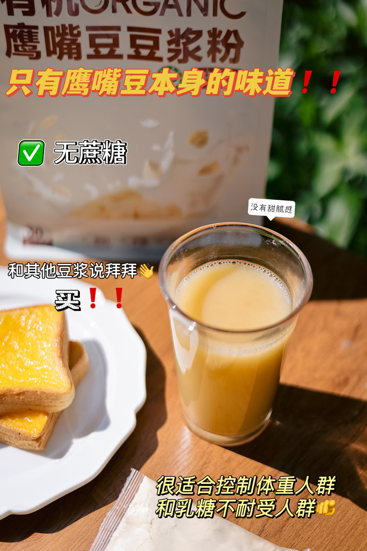 市面上有些豆浆加了白砂糖让你不知不觉就摄入了糖分对于控制体重人群和乳糖不耐受人群很不友好所以真的很推荐这款有机豆浆粉