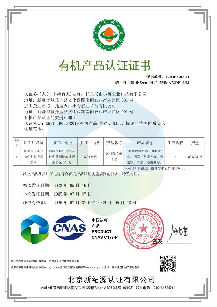原料——新疆有机鹰嘴豆。产自巴尔鲁克山下,这里的鹰嘴豆产量高,色泽金黄,品质好。选用山区农户直供非转基因鹰嘴豆,它皮薄,圆润,饱满,还带有独特的板栗味儿,口感沙糯。手工挑选之后,自然晒干,采用全豆低温研磨,保留了鹰嘴豆的全部营养。