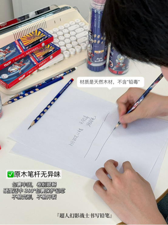 孩子刚开始学习写字 写字姿势和握笔姿势都不是特别好 所以我就只能从零开始,再帮孩子纠正一遍 为了让孩子可以有一个好的写字状态 就特地给她准备了这款超人幻影战士书写铅笔