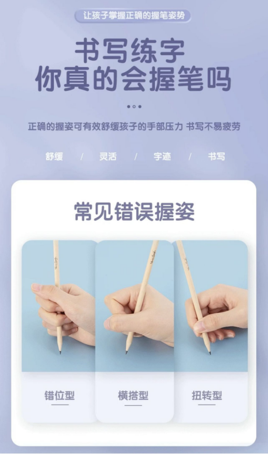 好用的学习文具促进孩子学习~ 有的宝妈可能对铅笔没有过多的了解👓 虽然只是简单的书写文具 但是如果没有选对的话 很可能会因为握笔姿势不对而 造成孩子近视、驼背等不良影响✅