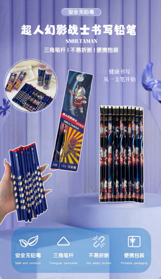 开学季‼开学季‼开学季‼ 给你家的宝贝🧏🏻准备好开学的文具了嘛‼ 快来看一下这款铅笔✏ 简直就是开学季必备单品 『超人幻影战士书写铅笔』正版授权铅笔套装 ✅洞洞铅笔笔芯是无毒,放心使用 ✅笔身是三角形的 上面的洞洞都是专家花了几年时间 研发出的精准位置✔ 可以让宝宝的拇指、食指、中指瞬间定位