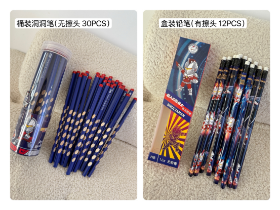 ✔桶装是蓝色30支一桶 (洞洞笔) ✔盒装是12支一盒(超人幻影战士图案) 满足小朋友一学年的铅笔书写需求!