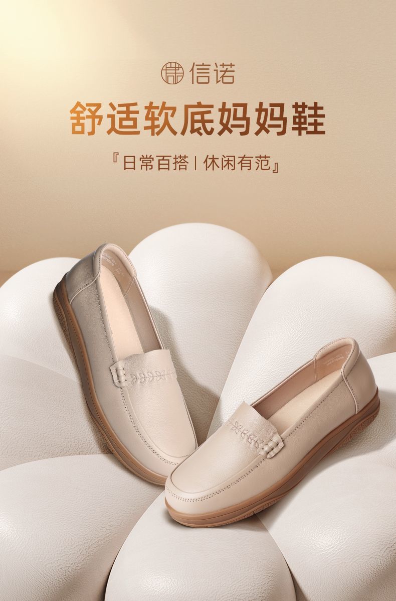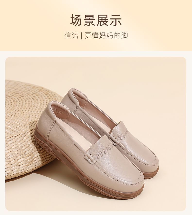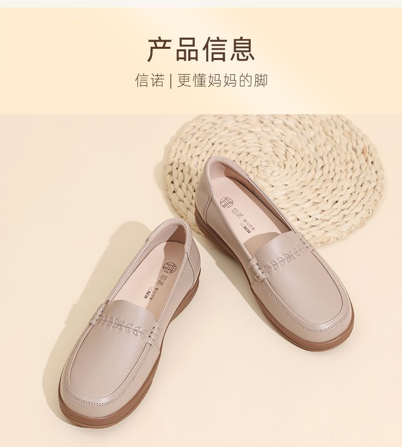 信诺真皮妈妈鞋2025新款秋季中老年舒适不累脚单鞋软底大码皮鞋女5Q3066-21
