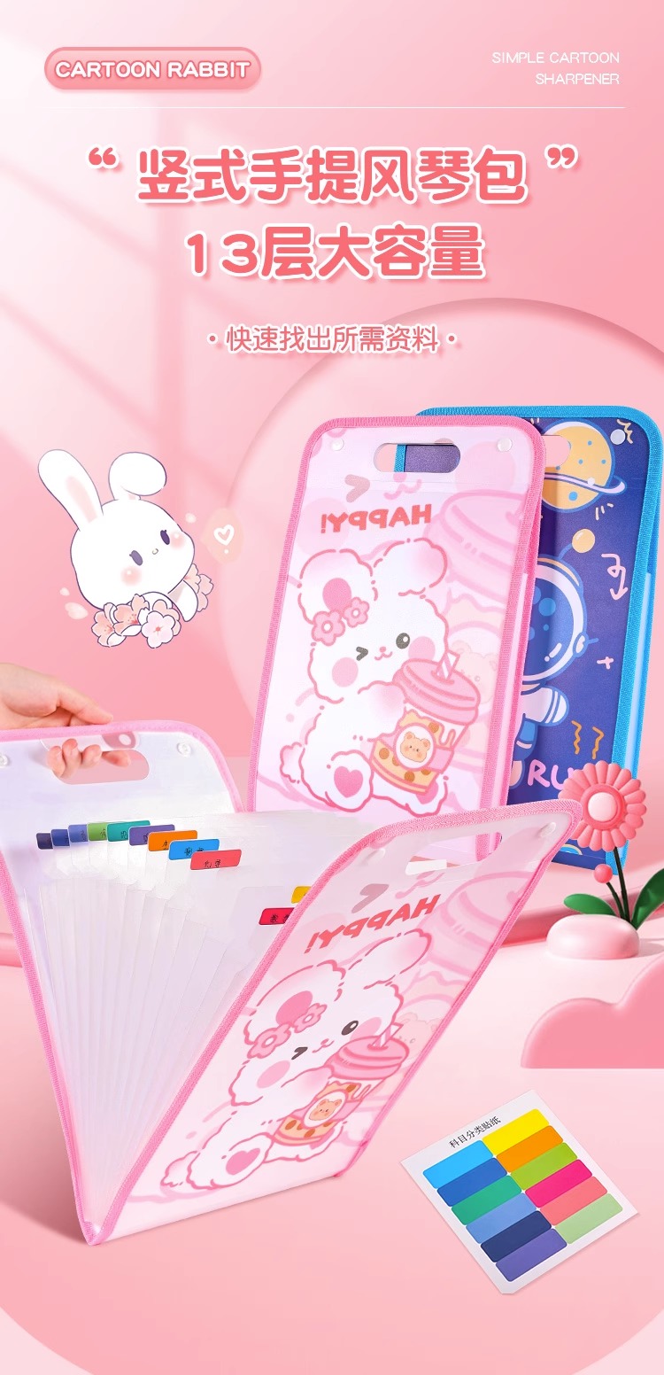 开学季福利!买一送一【升级款带图案13层大容量,试卷分类收纳】试卷收纳袋手提竖式风琴包文件夹资料册创意票据试卷夹糖果色简约文件袋