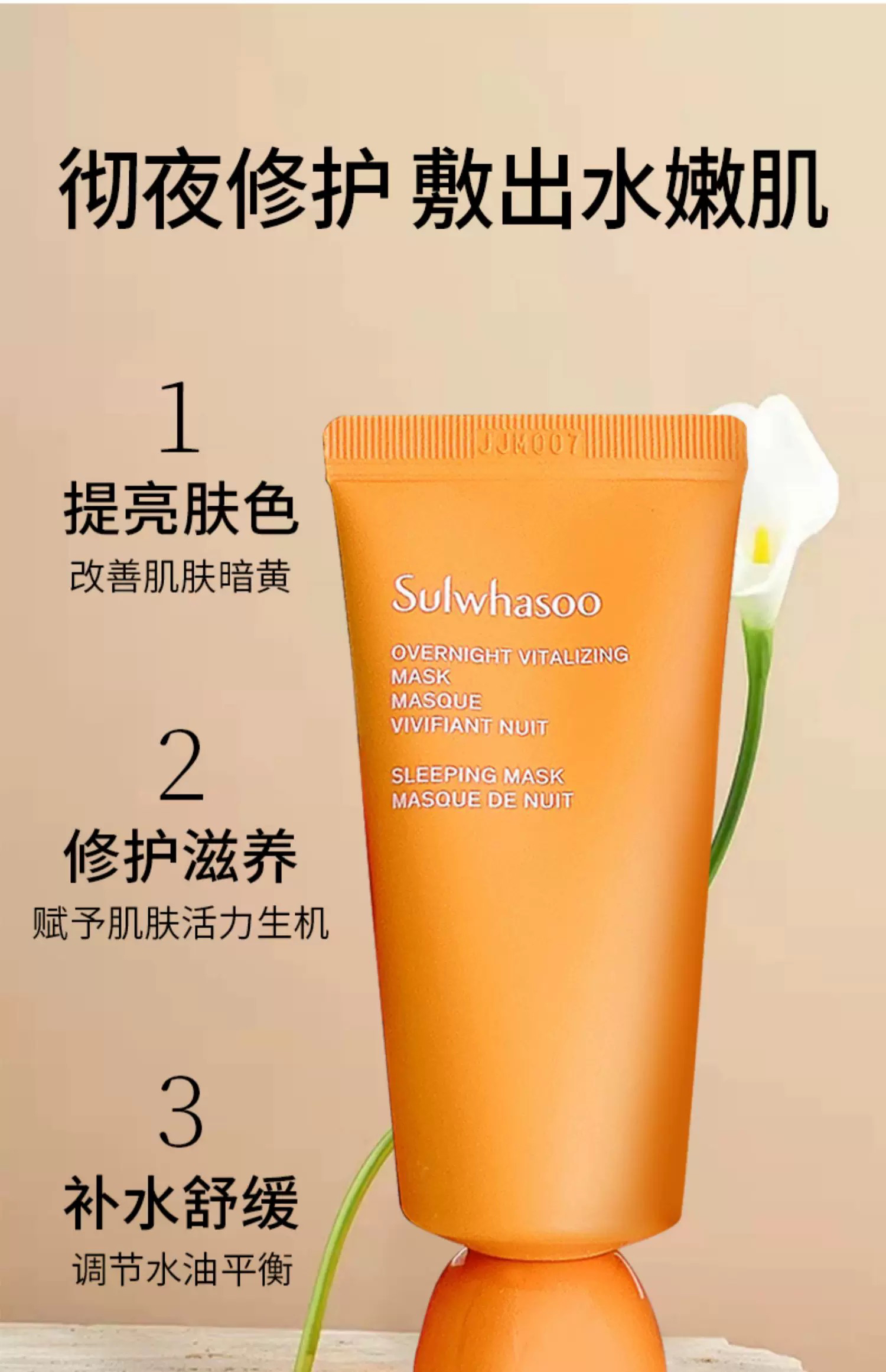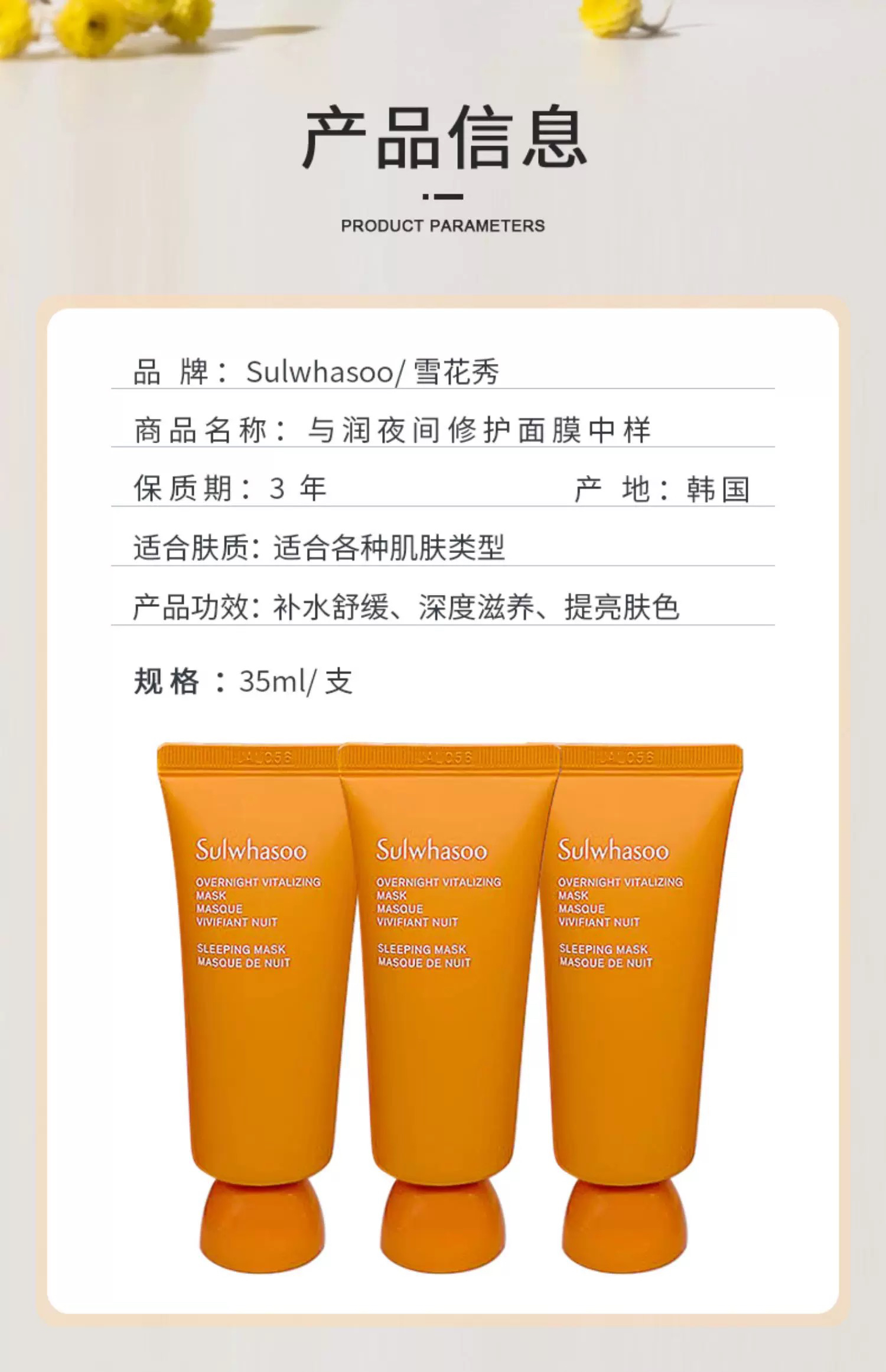 【专柜小样】韩国 SULWHASOO雪花秀 玉容撕拉/ 雨润睡眠乳涂抹面膜 35ml