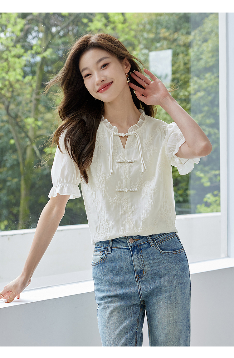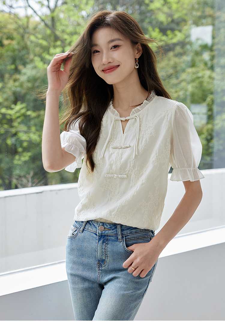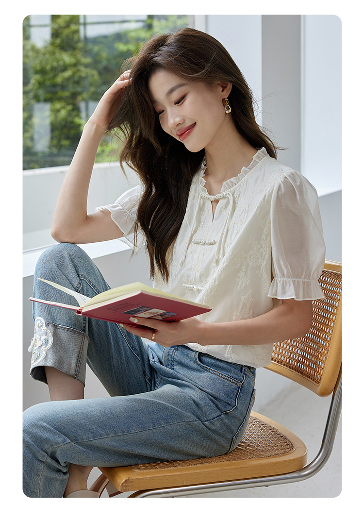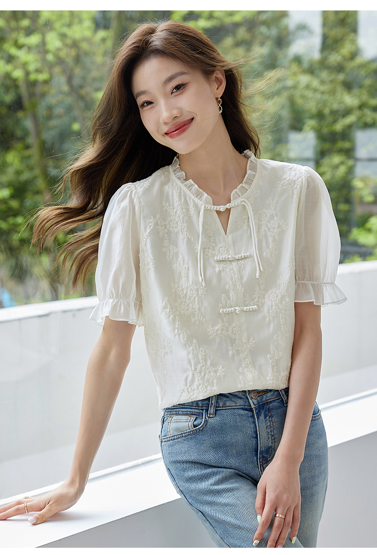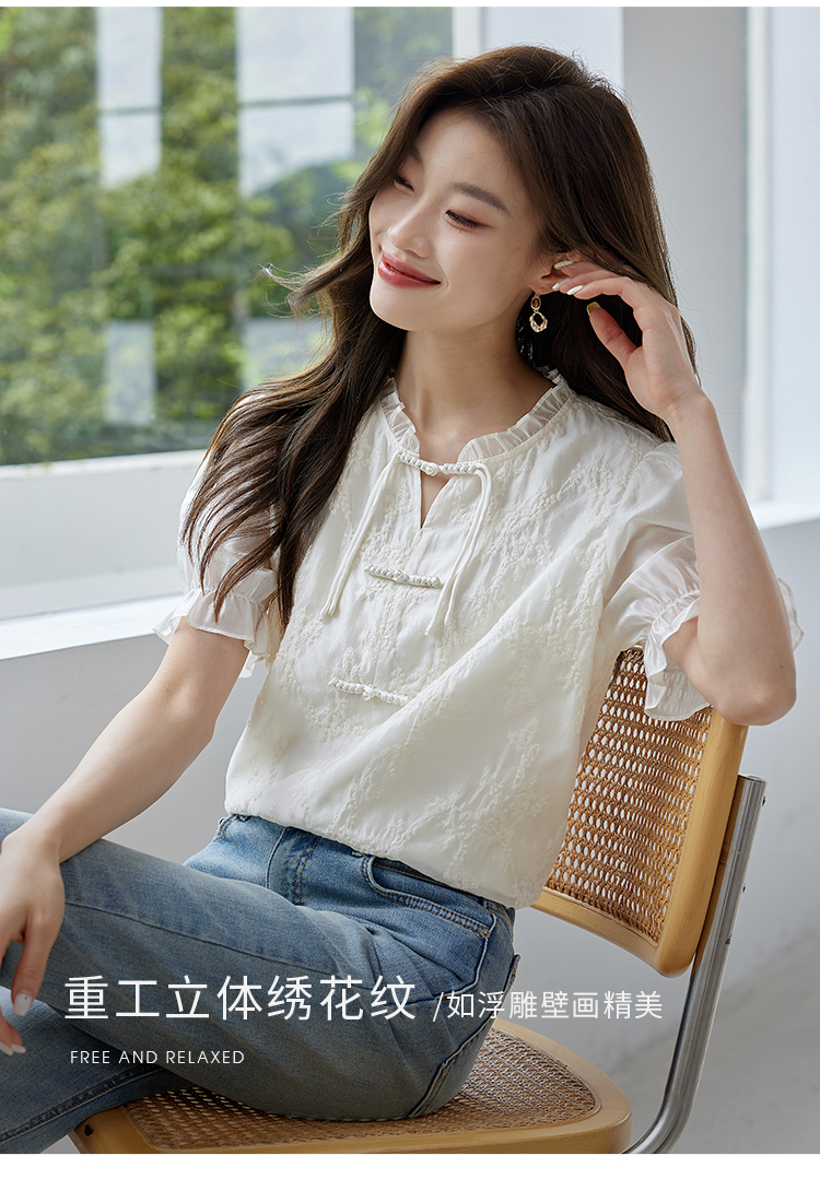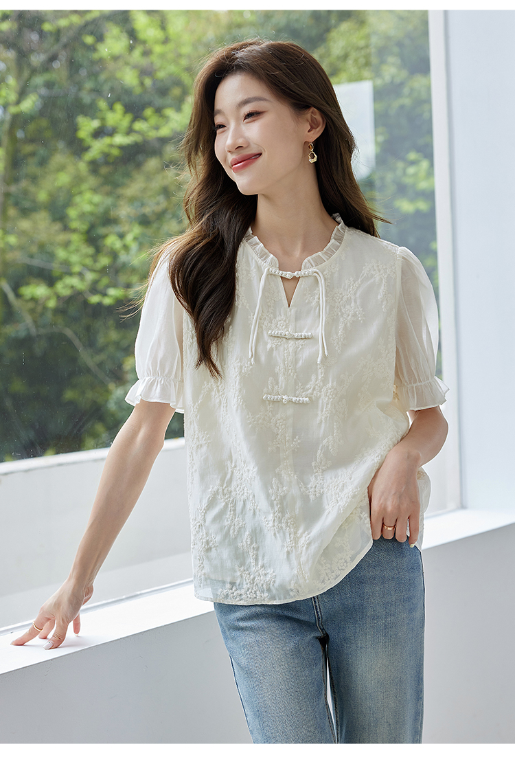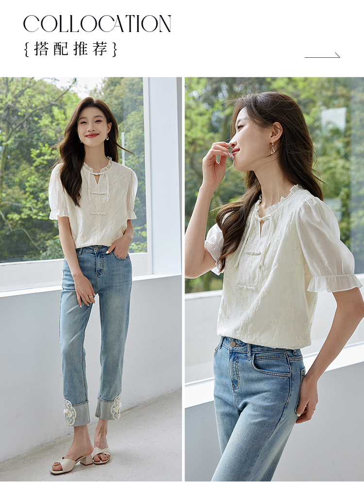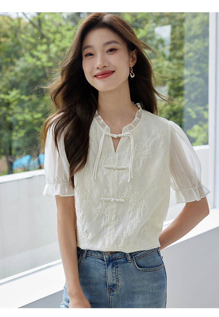 【专属特价】熙世界国风刺绣天丝衬衫2025夏天新款泡泡袖新中式衬衣别致上衣