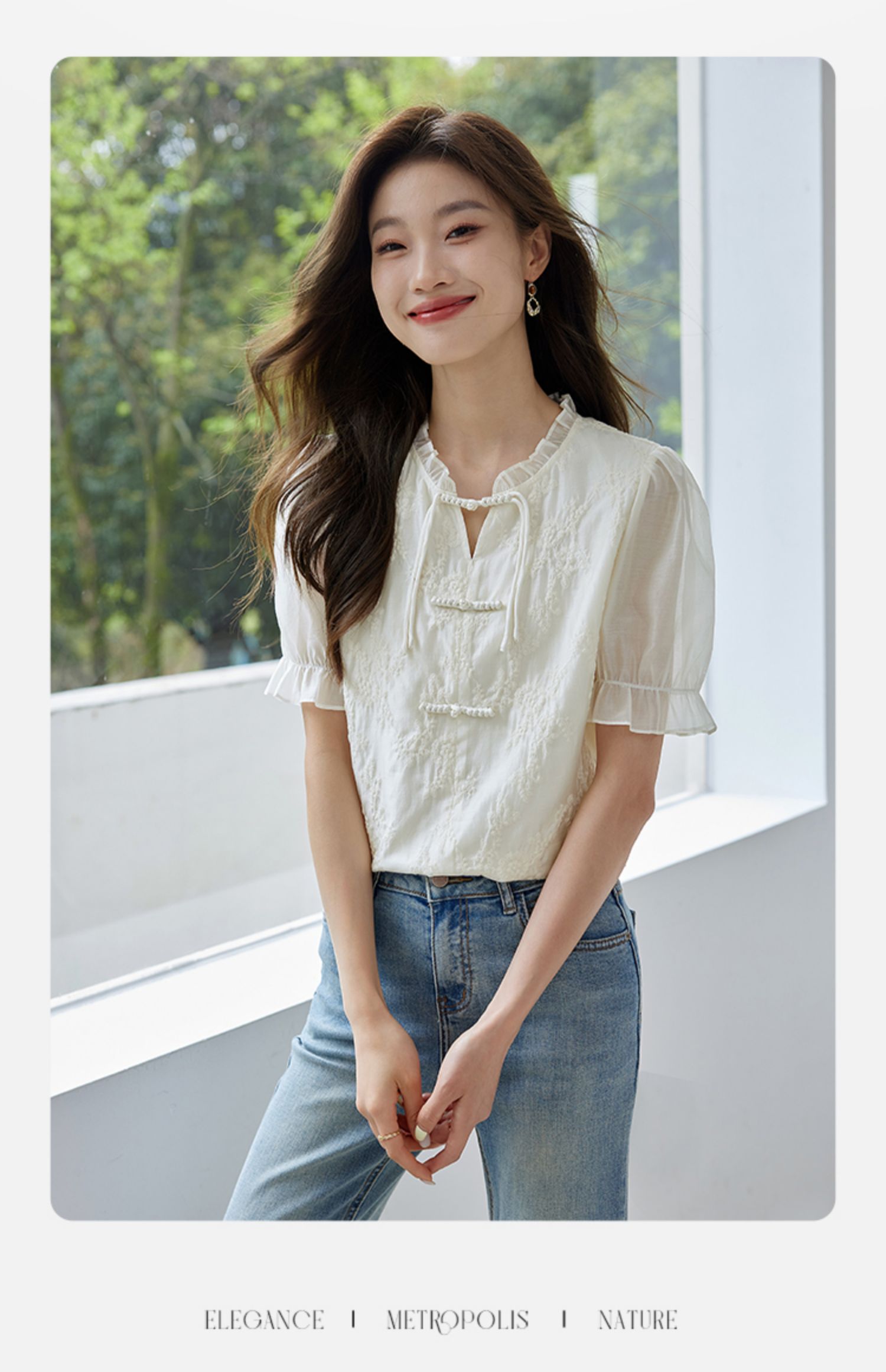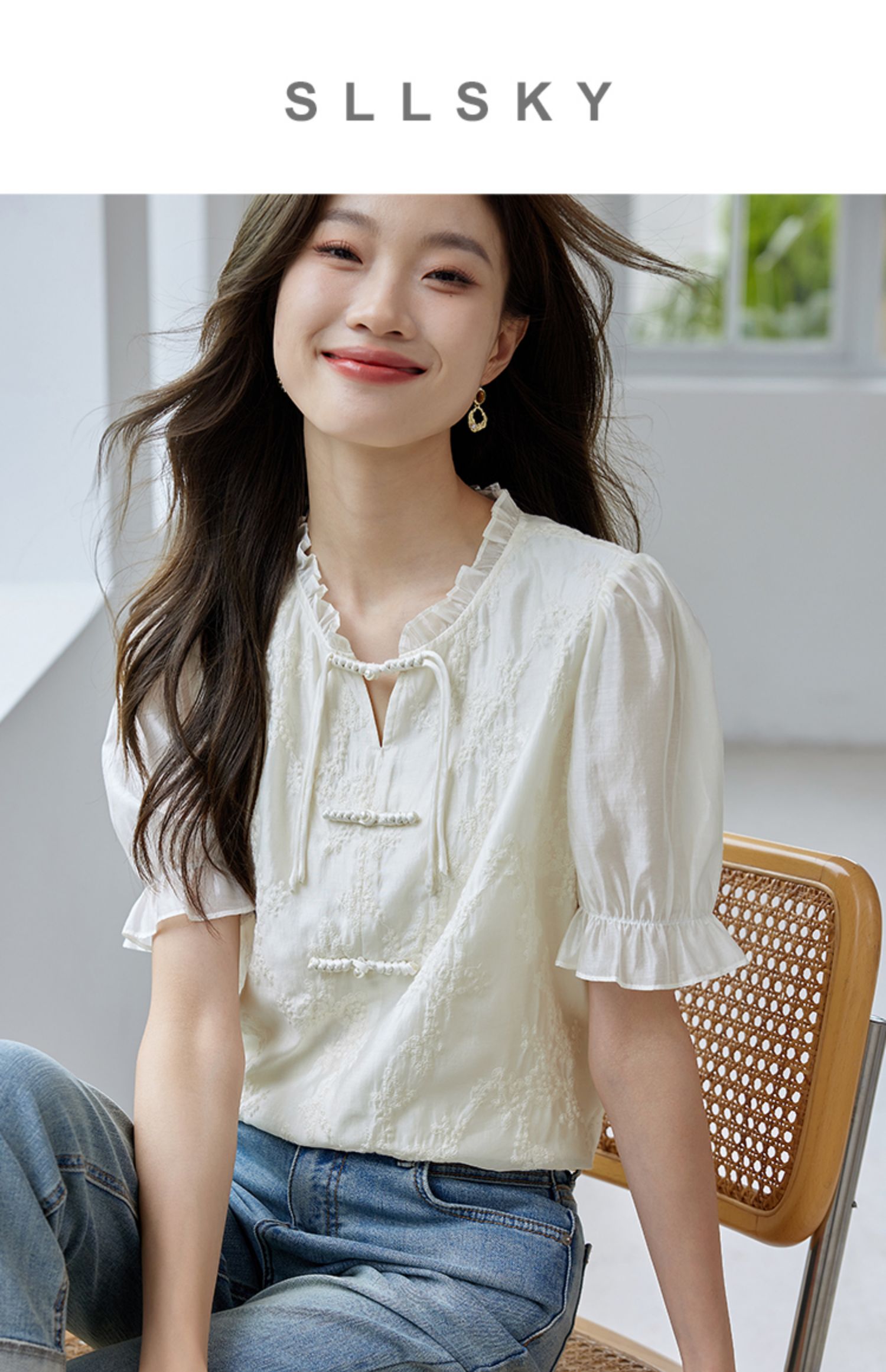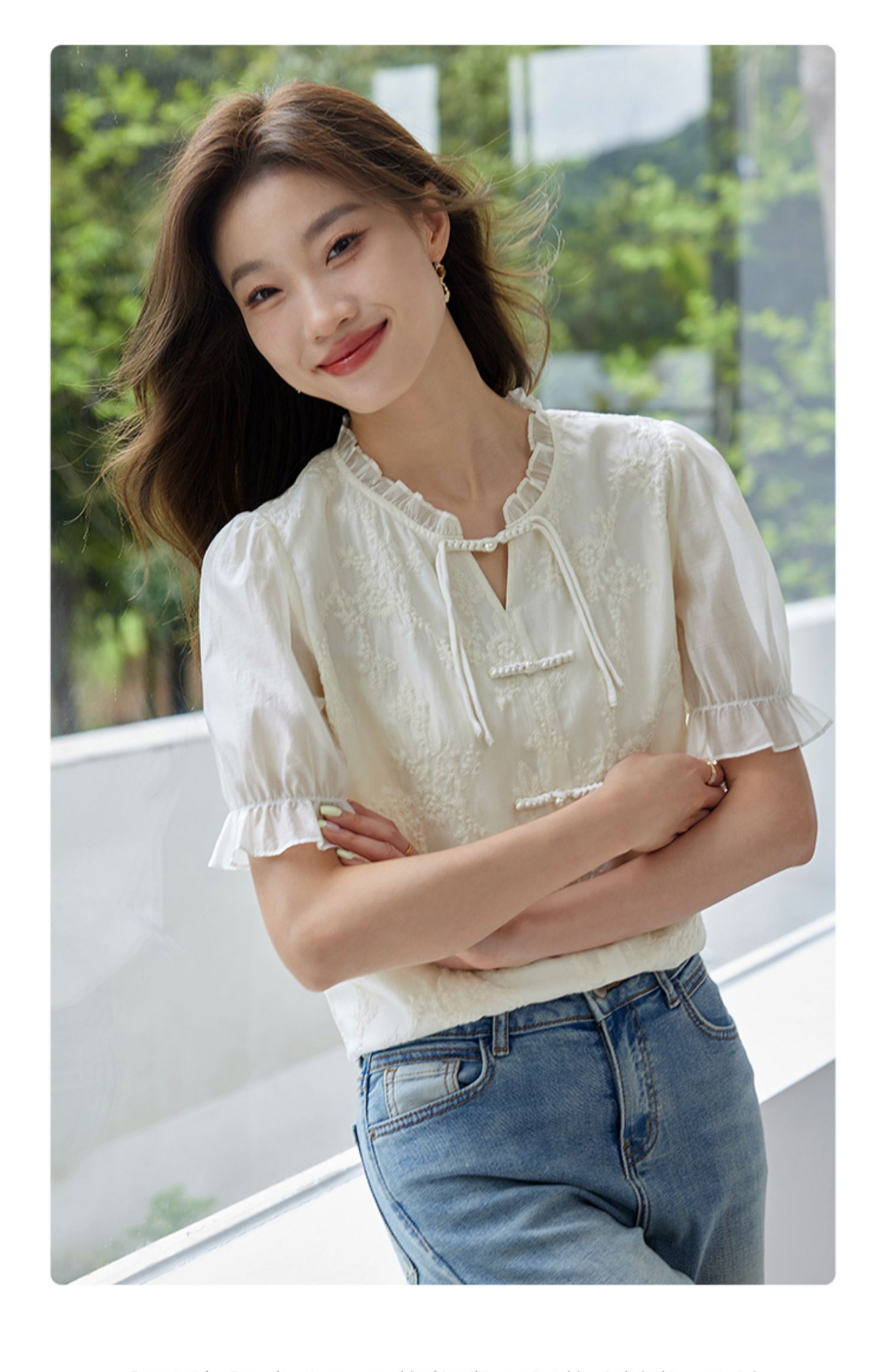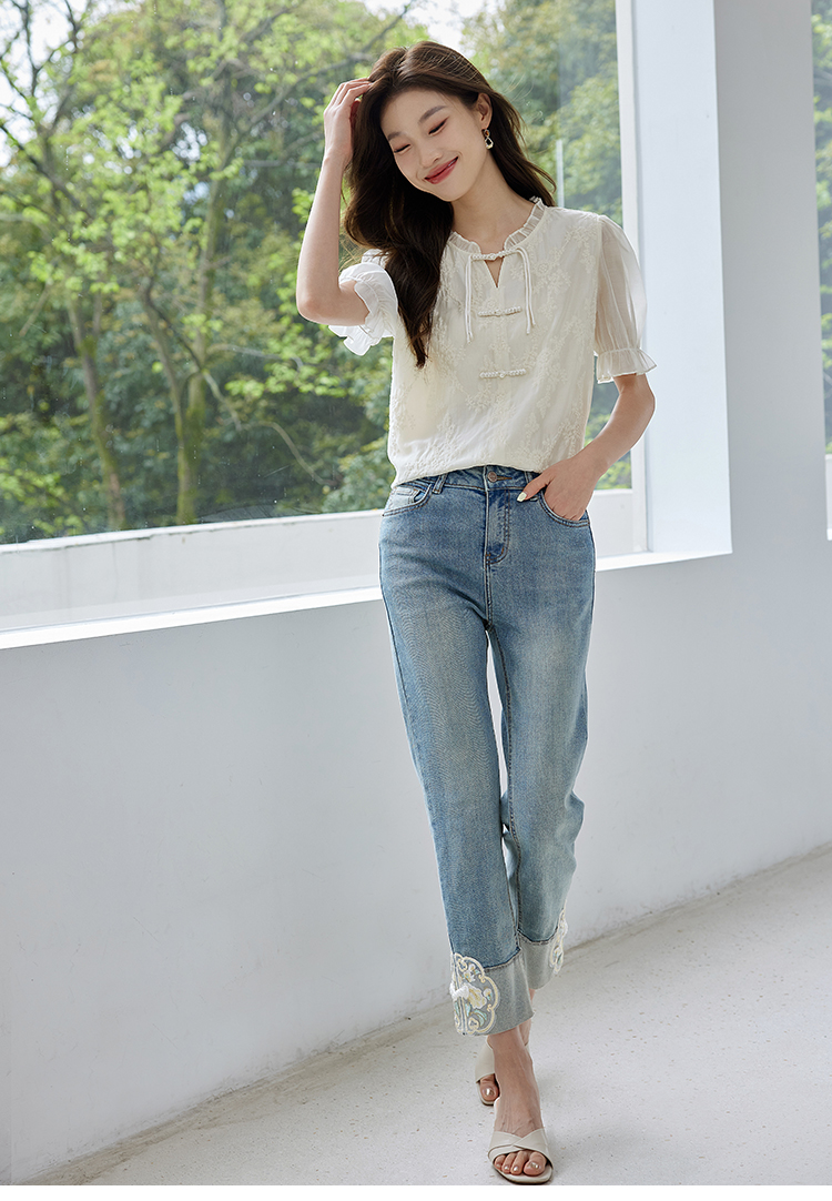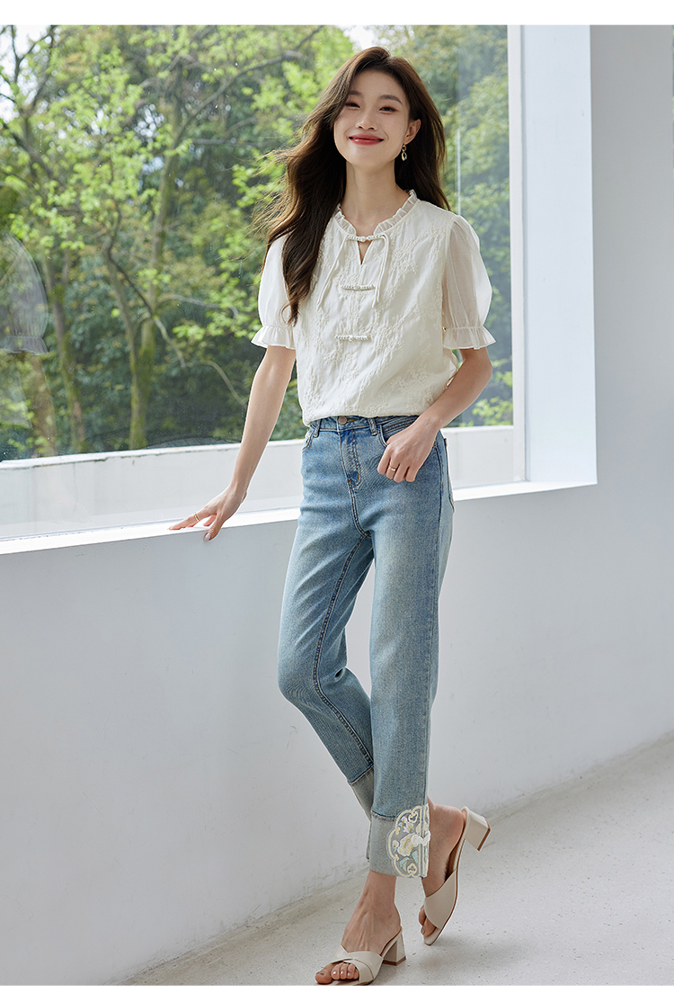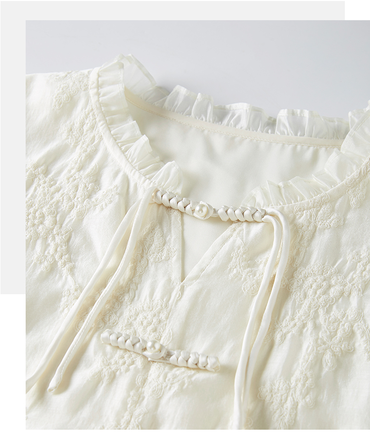 【专属特价】熙世界国风刺绣天丝衬衫2025夏天新款泡泡袖新中式衬衣别致上衣