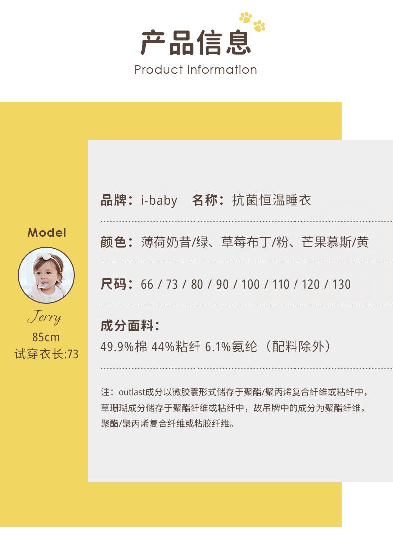 【99元任选3套单件不退】i-baby/英伦宝贝&奈娃联名儿童恒温睡衣 婴幼儿连体内衣分体套装