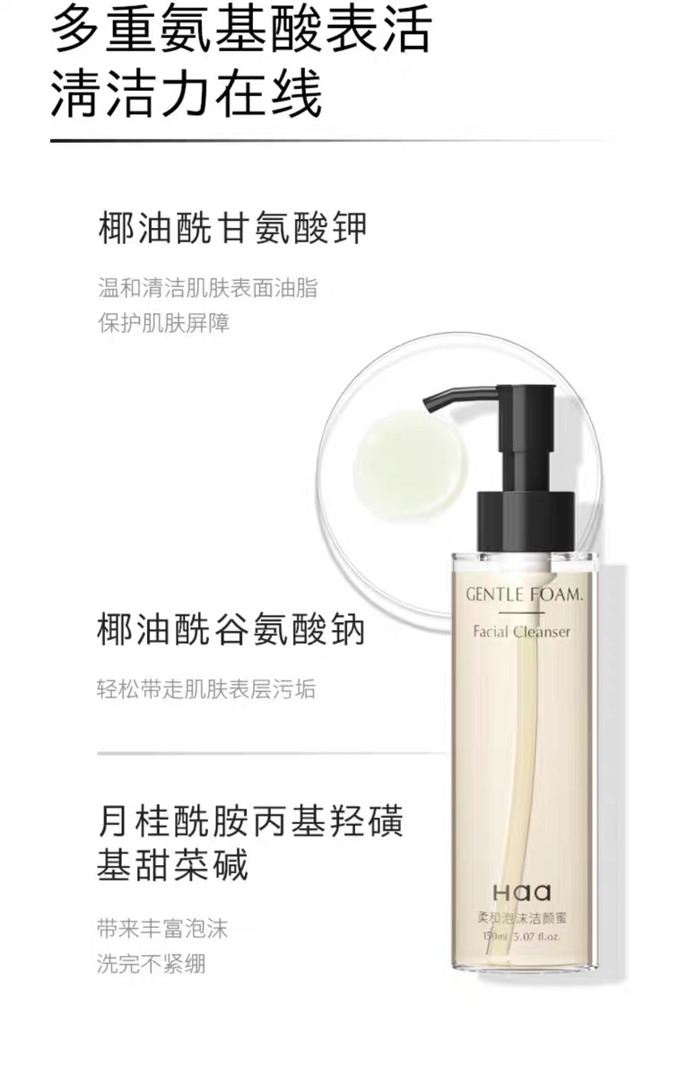 【海关监管】去油大佬!Haa柔和泡沫洁颜蜜150ml-氨基酸控油保湿-会员5折