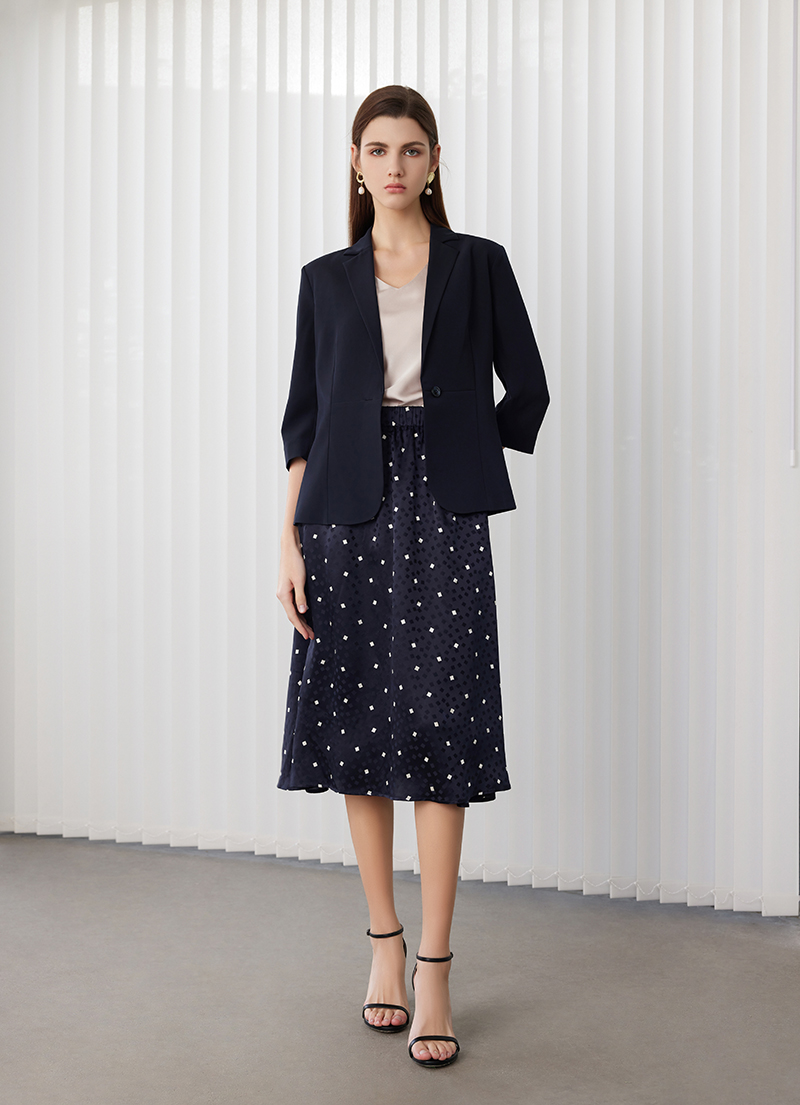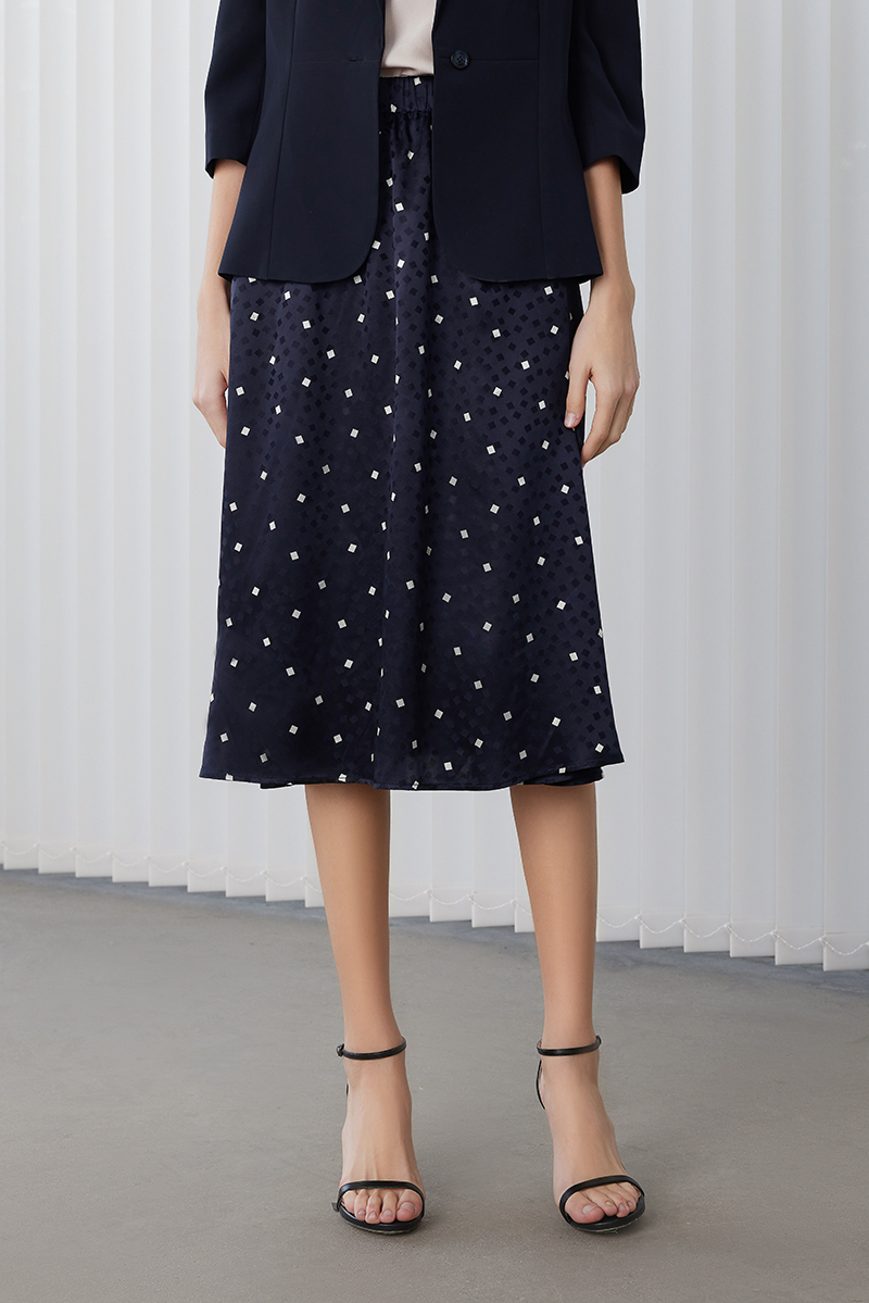 【桑蚕丝印花半裙】24年春夏女士新品100%桑蚕丝白点米格薄款半身包臀裙