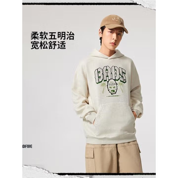李宁男子2025秋季套头印花连帽运动上衣健身卫衣AWDV317-2