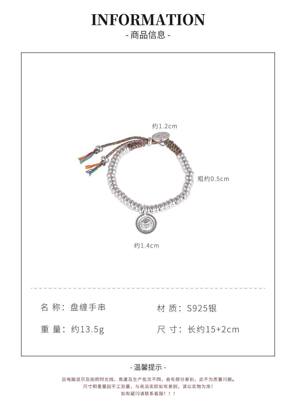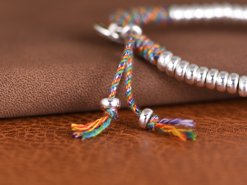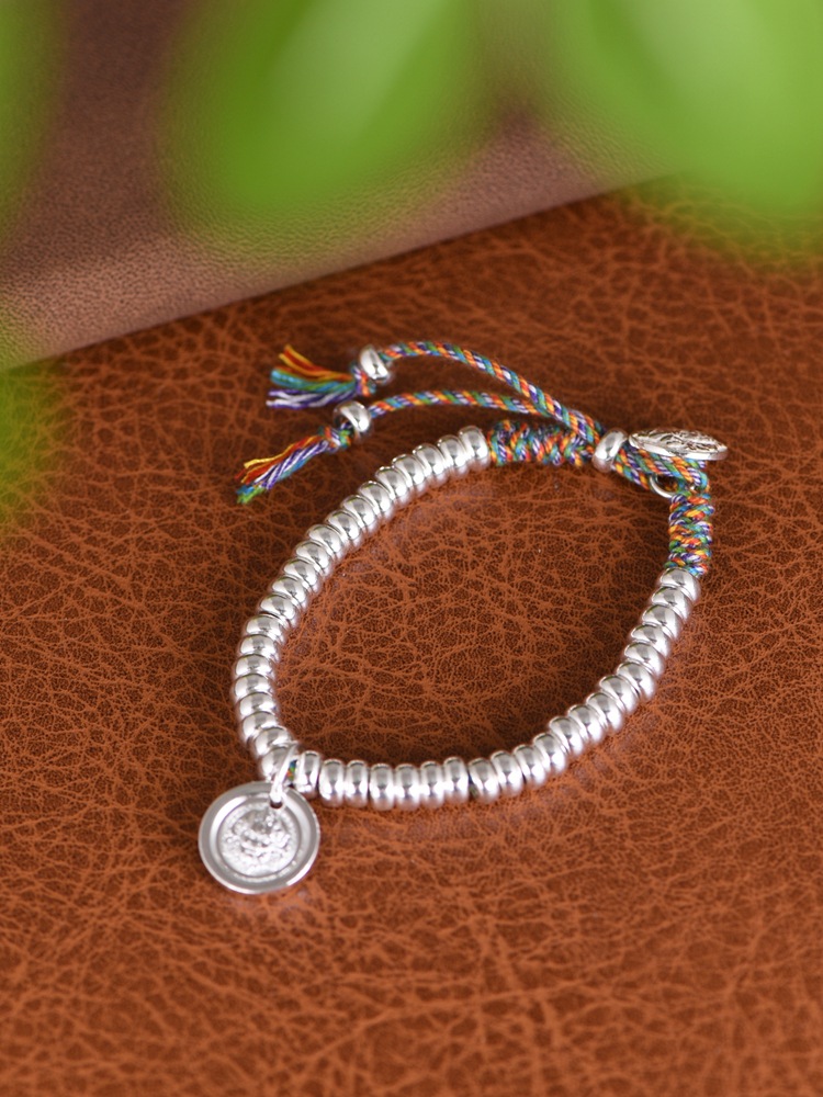 【黄财像】S925银气泡珠算盘珠手工五彩绳吊牌手链【SCH-SY40796】