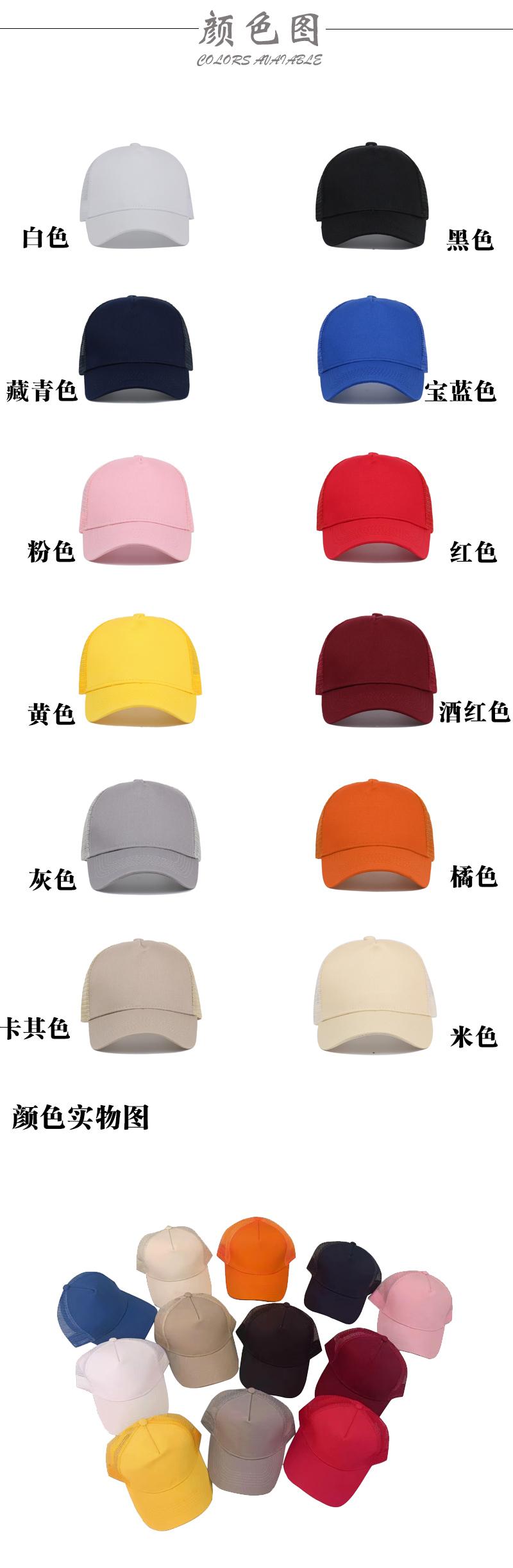 纯棉五片网帽塑料调扣男女同款帽子棒球帽遮阳防晒帽鸭舌帽网孔透气ZY3003