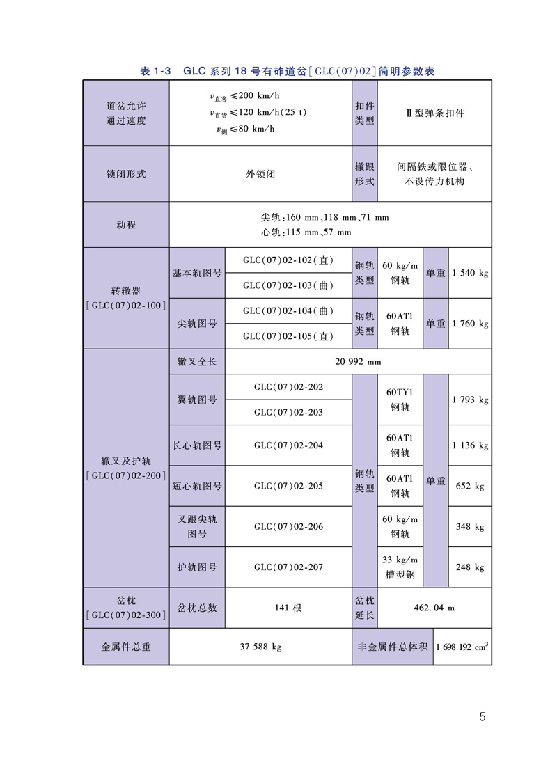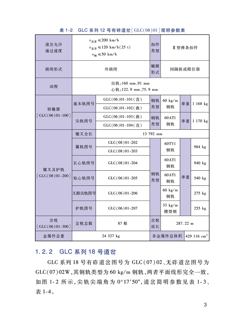 本书为《铁路道岔安装维护手册》之一《普速铁路可动心轨辙叉单开道岔安装维护手册》,本书全面收集了《铁路道岔使用规定》明确的普速铁路可动心轨辙叉单开道岔的相关资料,其中详细的介绍了道岔平面线型和简明参数、道岔轨距与框架轨距、钢轨件及钢轨组件、扣件系统、轨下基础和转换设备等信息。同时编写了道岔装卸、运输和贮存的基本要求。详细介绍了道岔现场安装的基本工序与铺设注意事项。列举了道岔的主要作业方法及要求。为进一步方便现场维护人员对道岔铺设及维护过程中,编制了道岔铺设检验项目及要求、道岔日常检查项点记录表,绘制了道岔铺设检验项目图示等。本书既可以作为道岔参数查询手册,同时也为道岔的安装、维护提供了详细资料供现场参考使用。