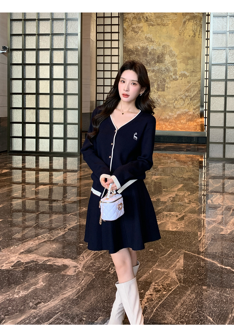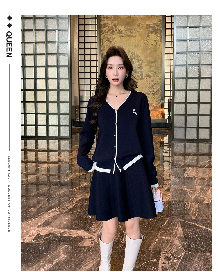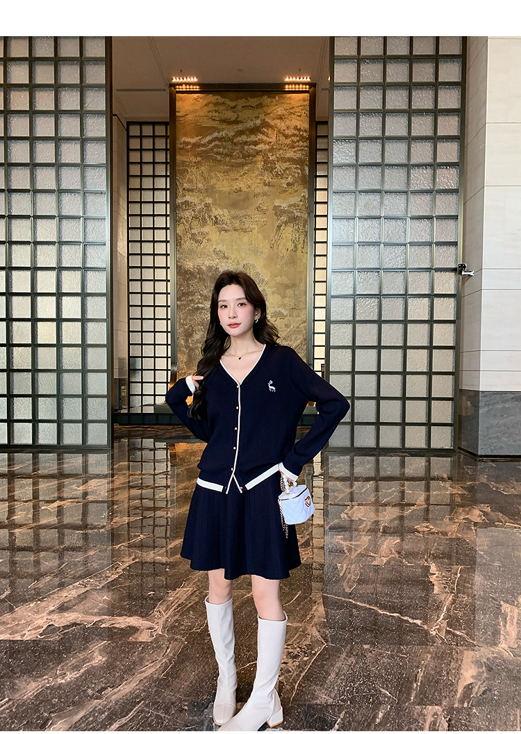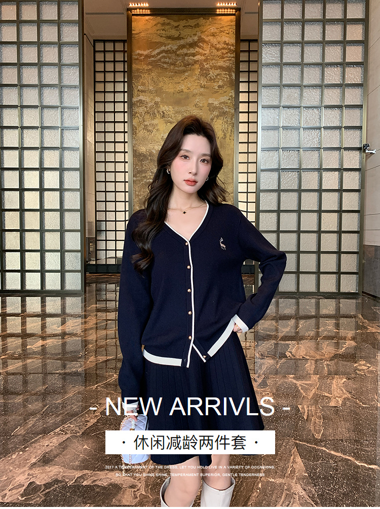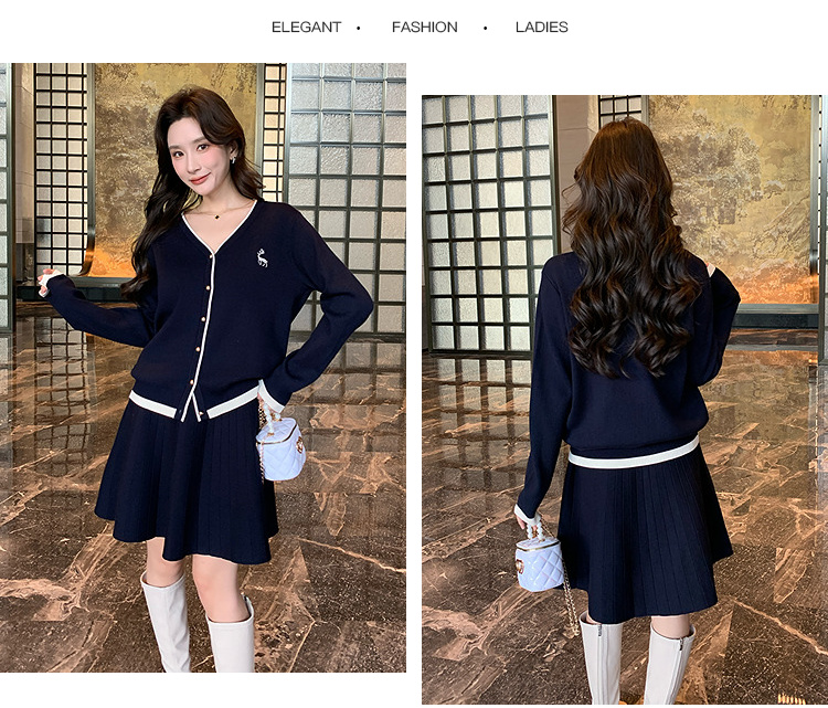 奢姿2024年冬季新款大码女装休闲气质两件套胖妹妹绣花V领套装9844969406