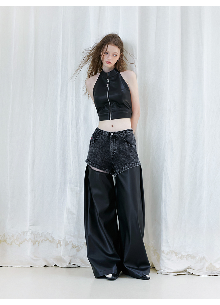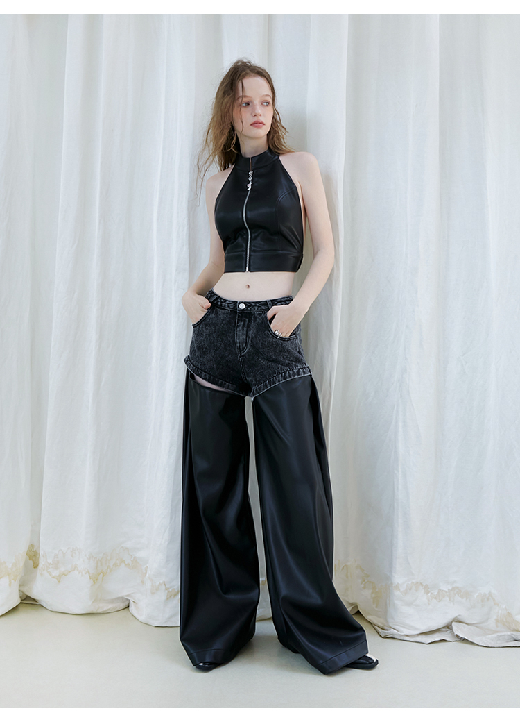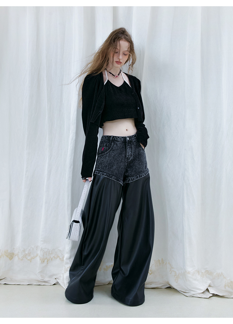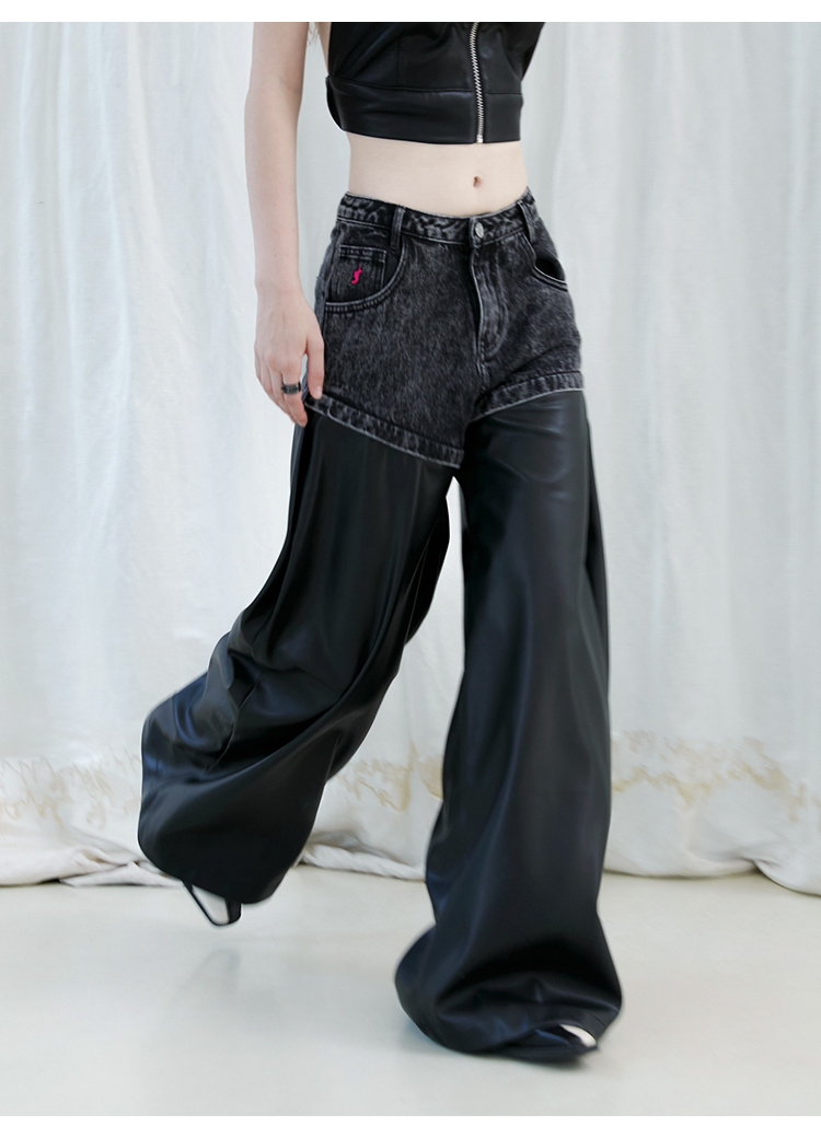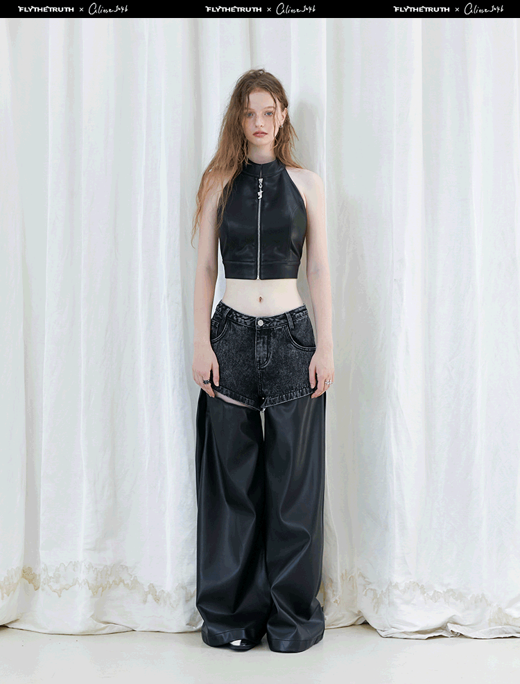 FTT Flythetruth 多面矿物质 可拆卸休闲裤子女秋冬款PU皮阔腿裤