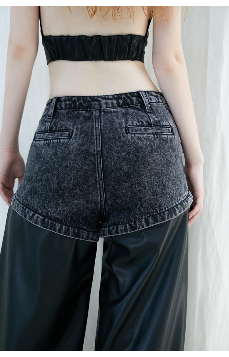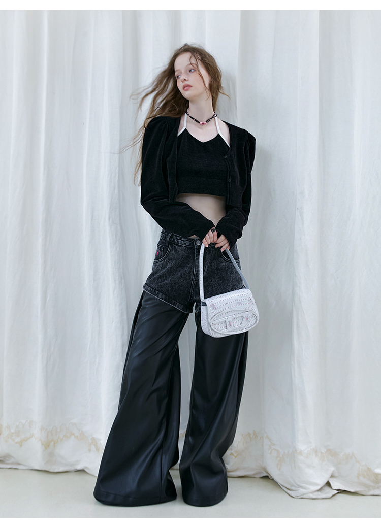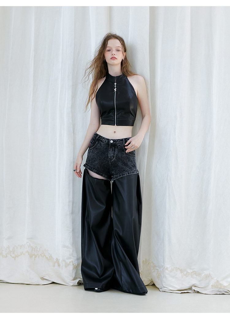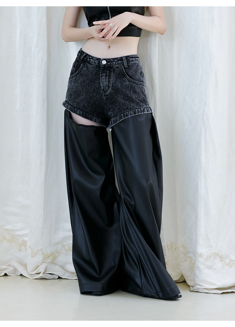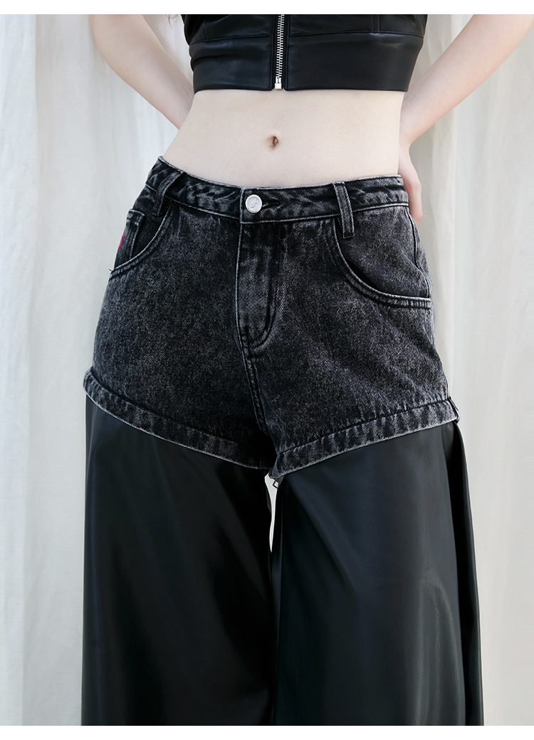 FTT Flythetruth 多面矿物质 可拆卸休闲裤子女秋冬款PU皮阔腿裤