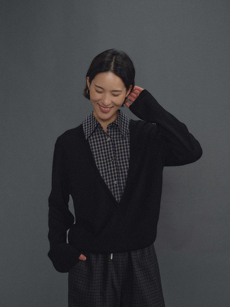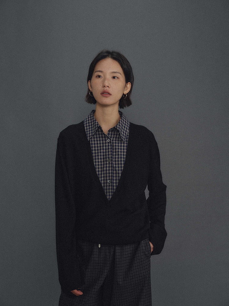 shyshystill/shy202411008/假两件大V领贝壳扣衬衣