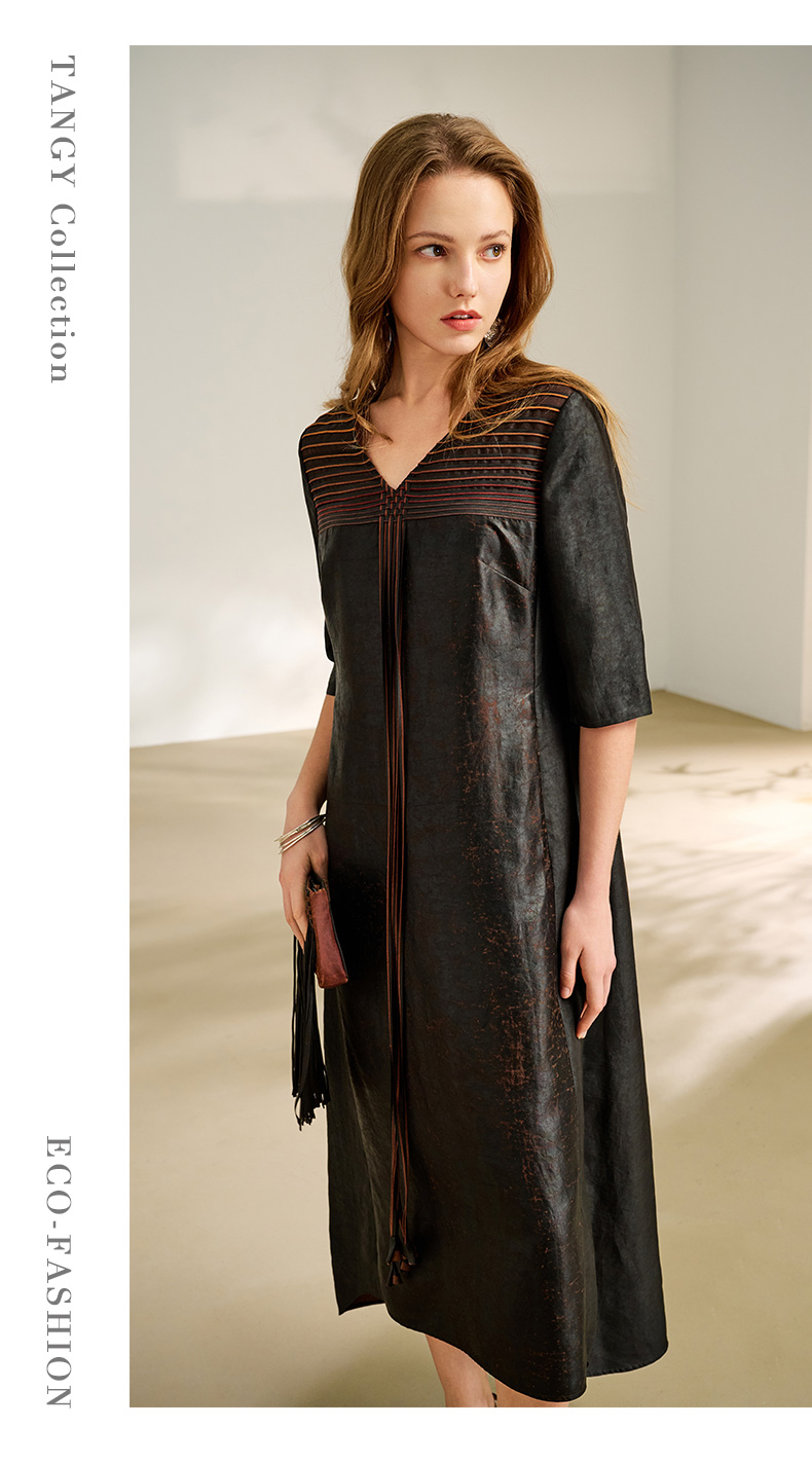 TANGY Collection/2025天意精品春季新品中国风女士莨绸连衣裙L251801