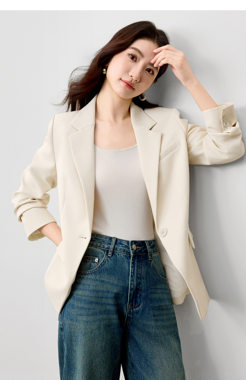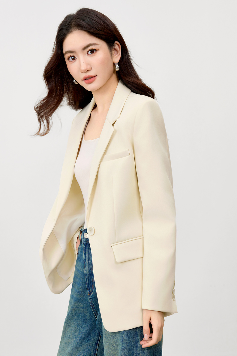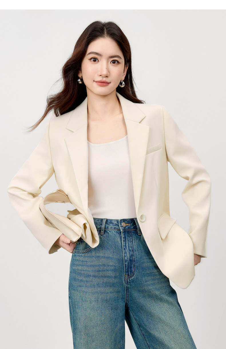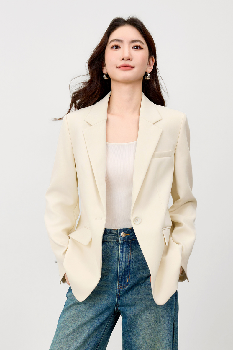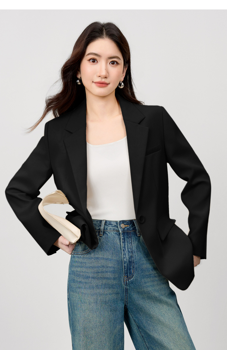 【内购】【8h通勤】职场上班气质平驳领一粒扣垫肩长袖直筒西装外套-153X80241