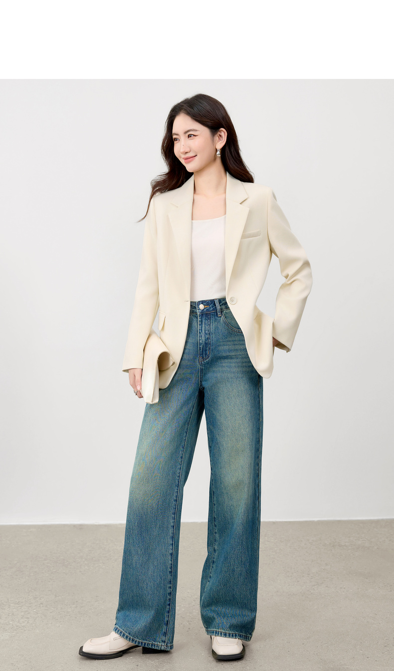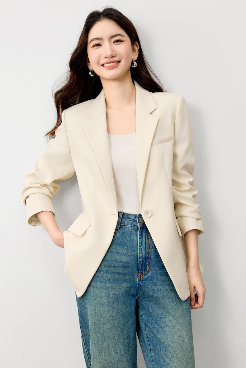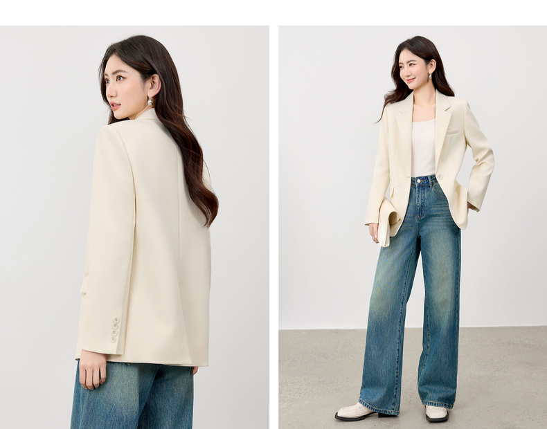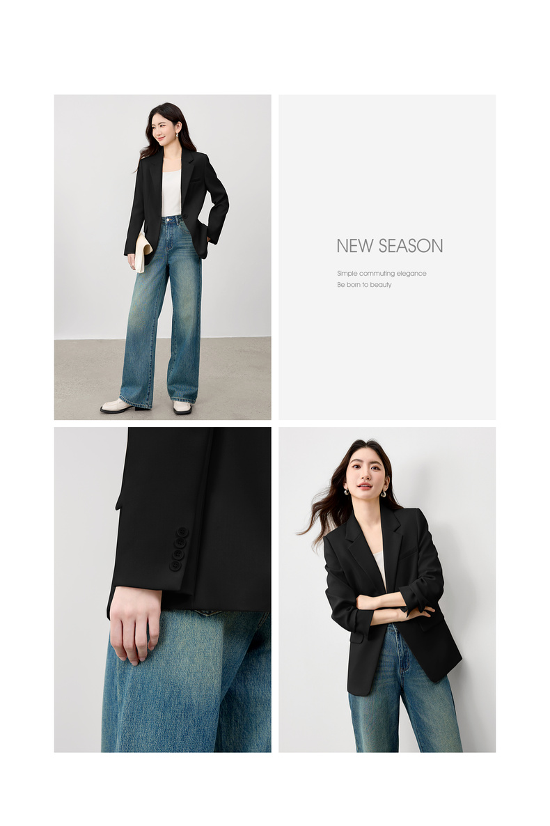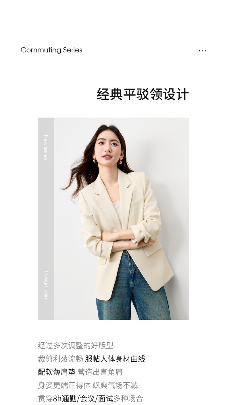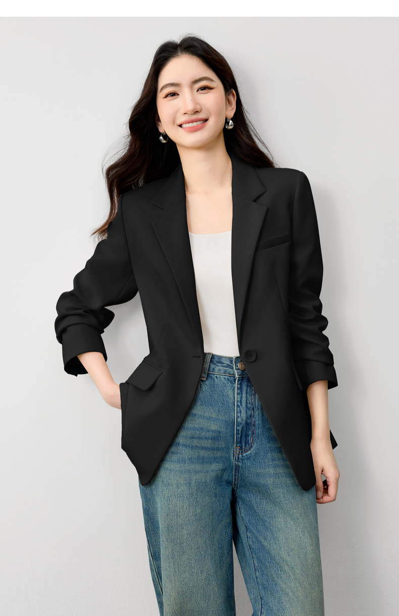 【内购】【8h通勤】职场上班气质平驳领一粒扣垫肩长袖直筒西装外套-153X80241