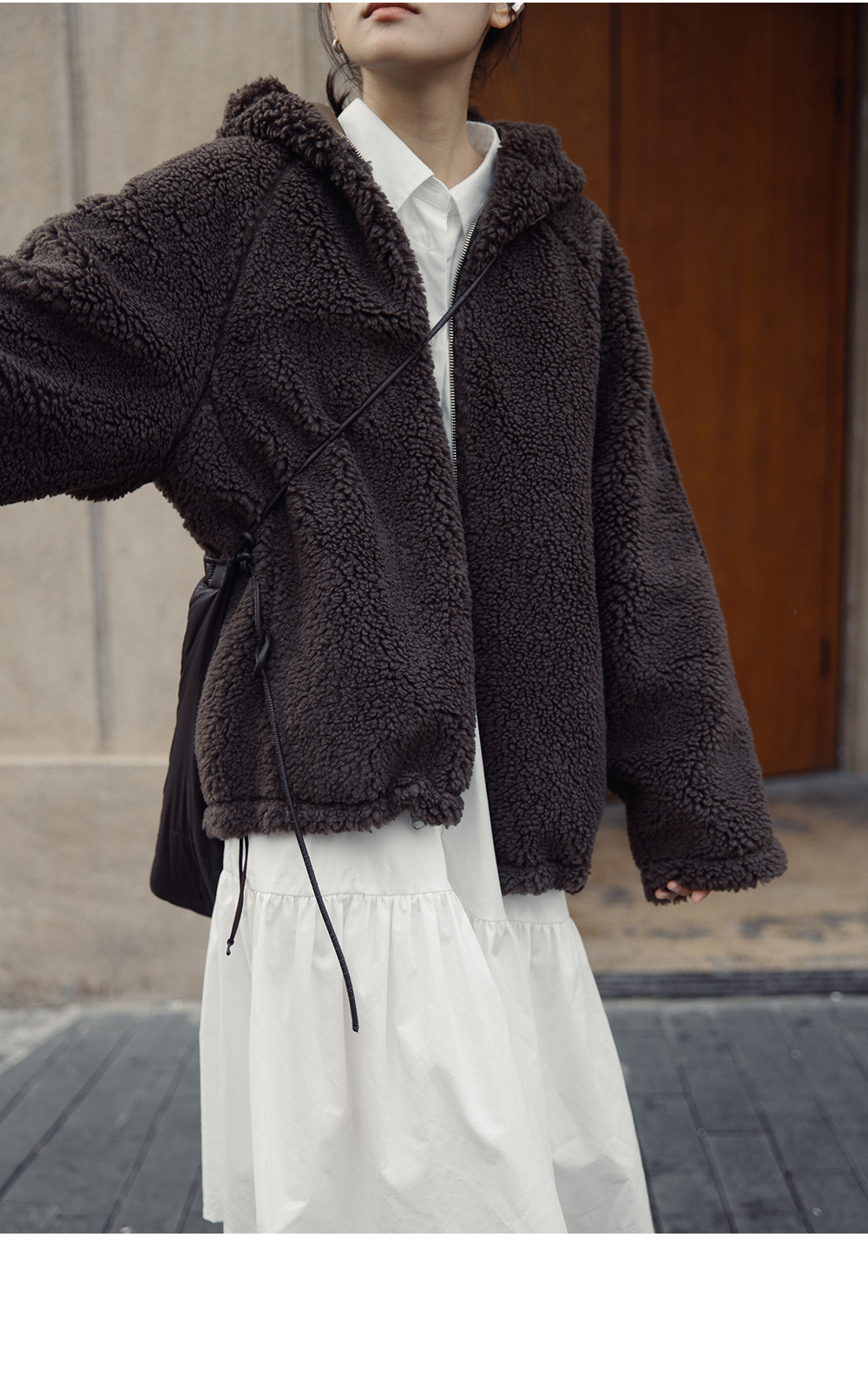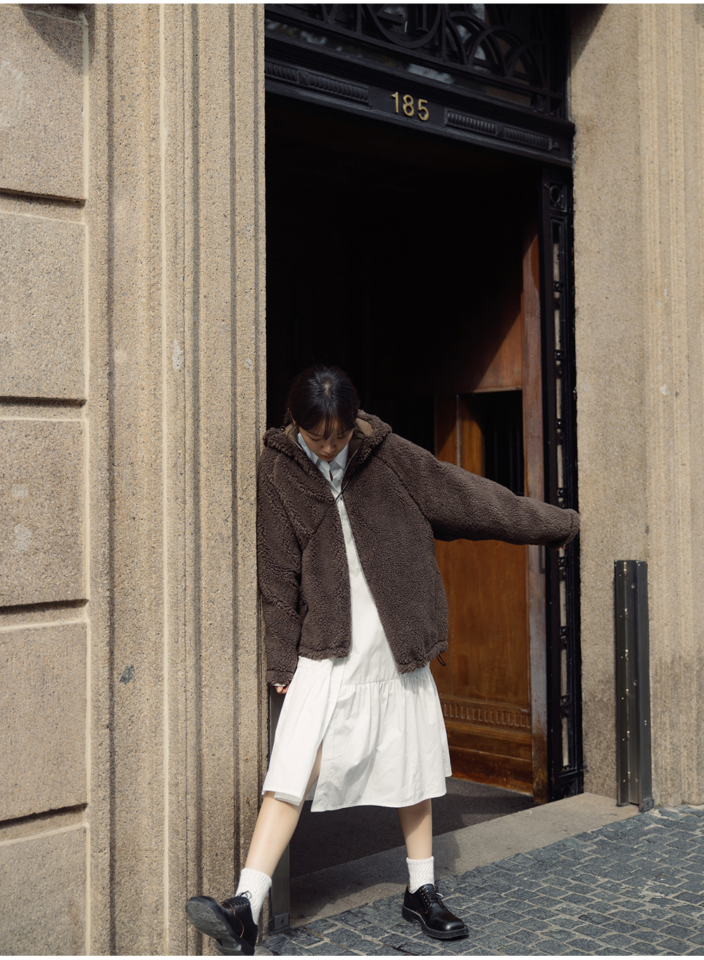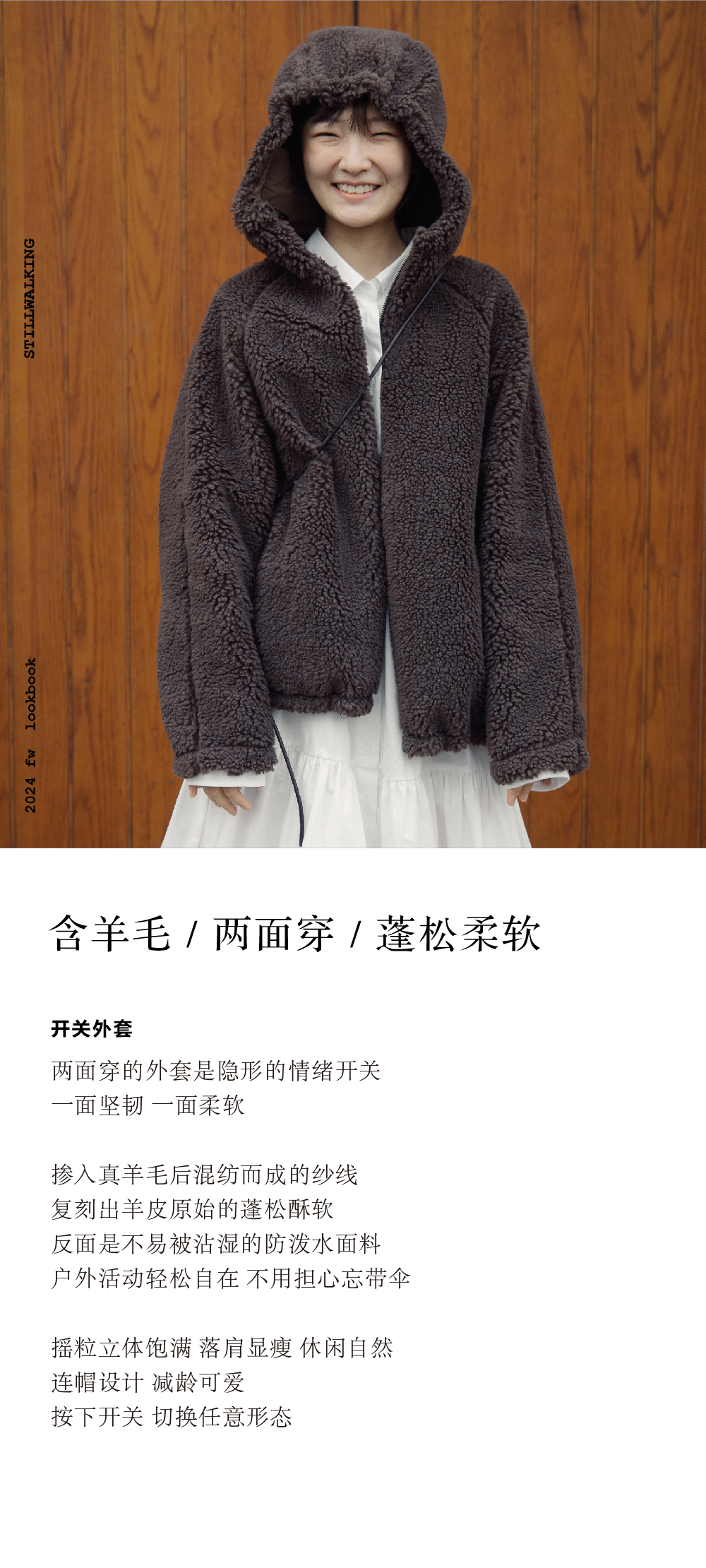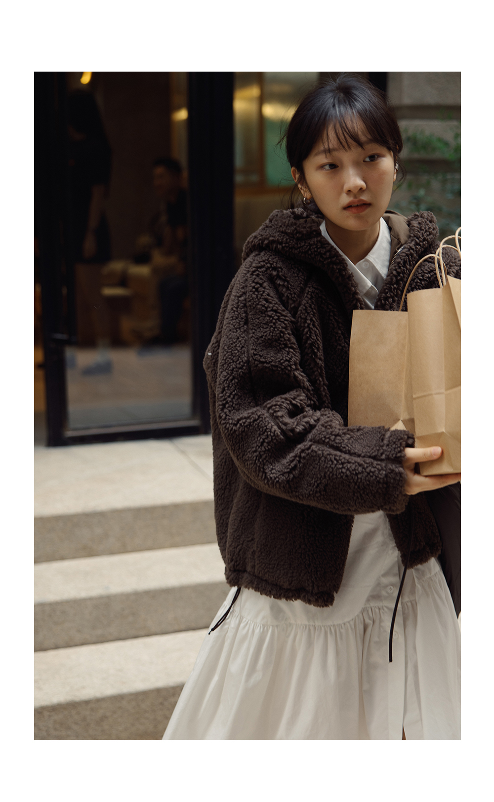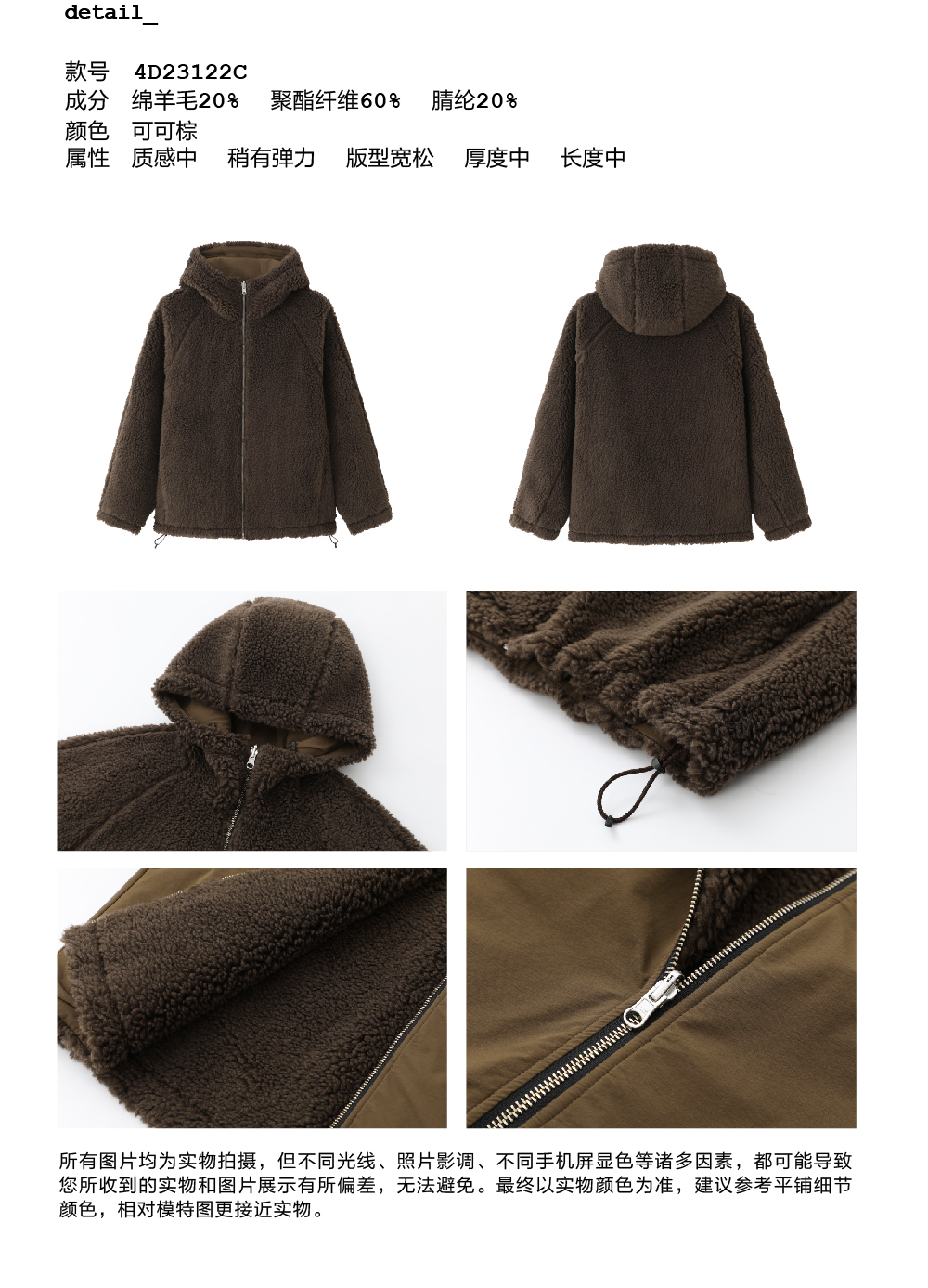 步履不停/4D23122C/两面穿棕色羊羔毛保暖开衫外套上衣