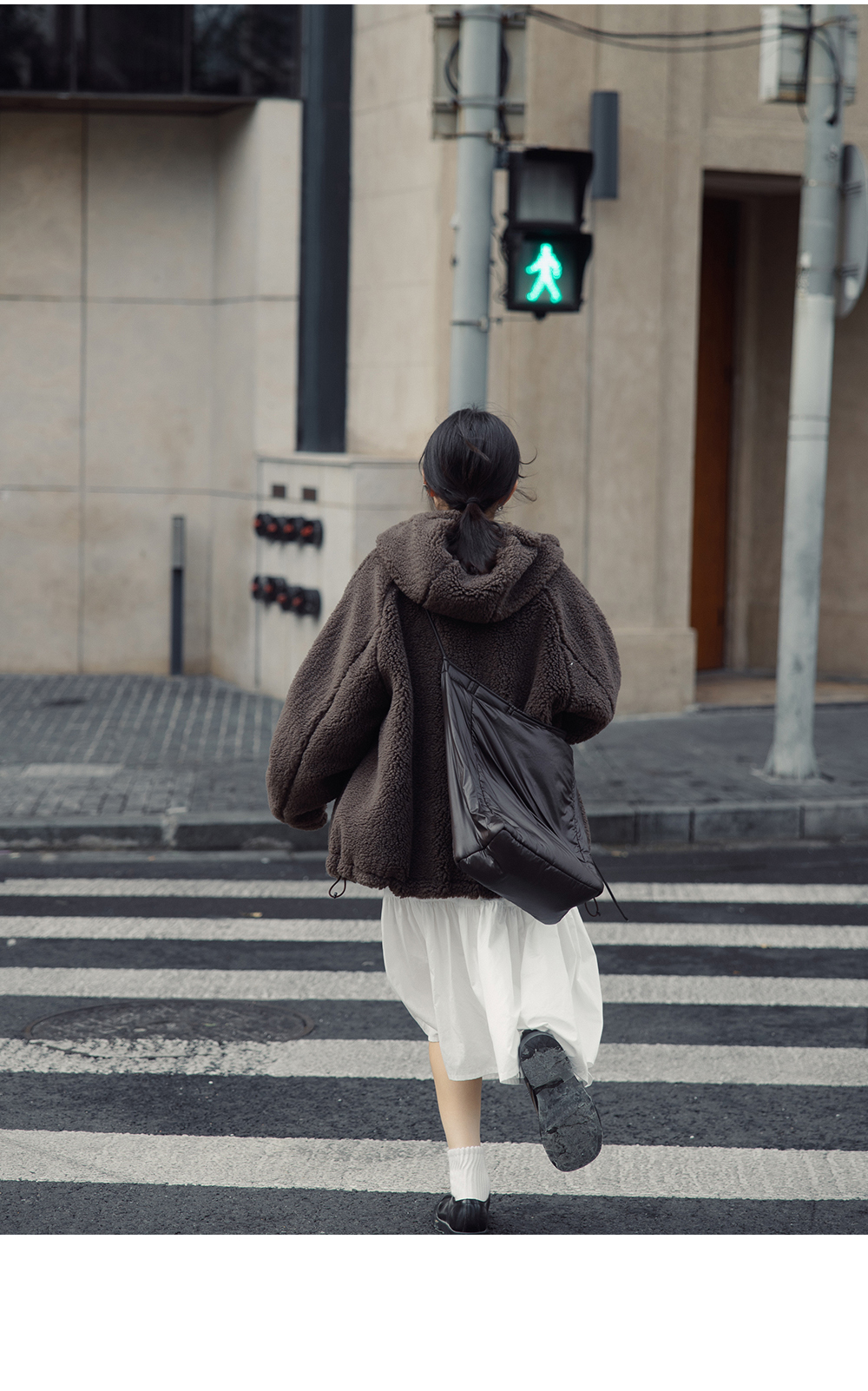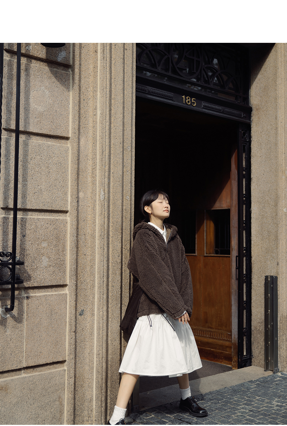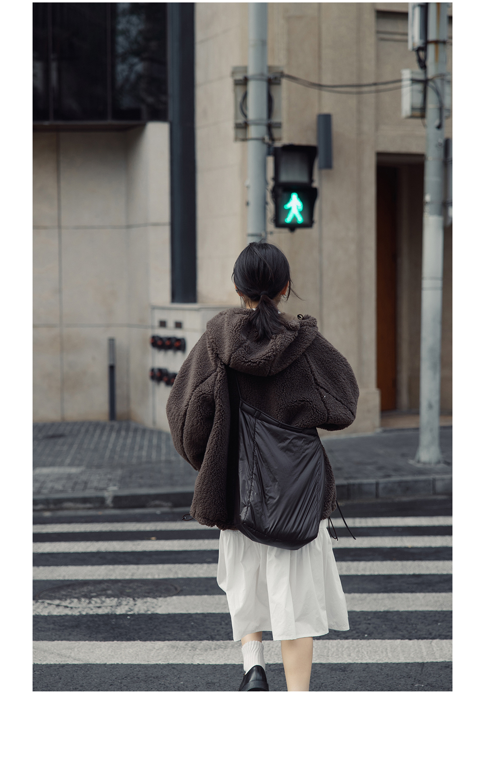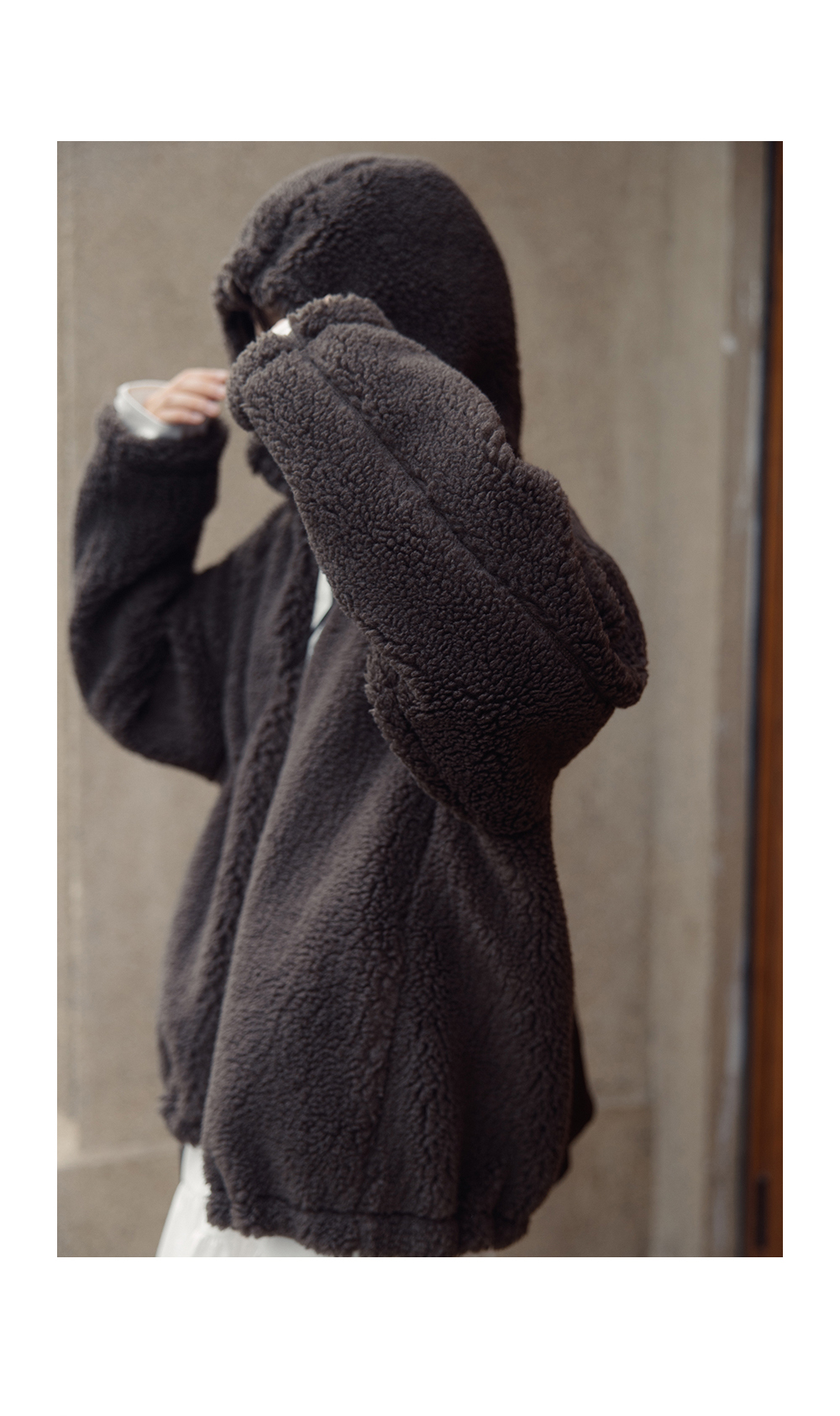 步履不停/4D23122C/两面穿棕色羊羔毛保暖开衫外套上衣
