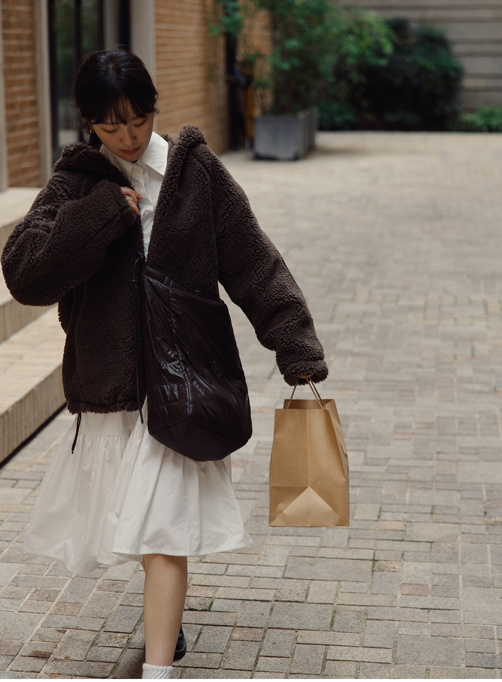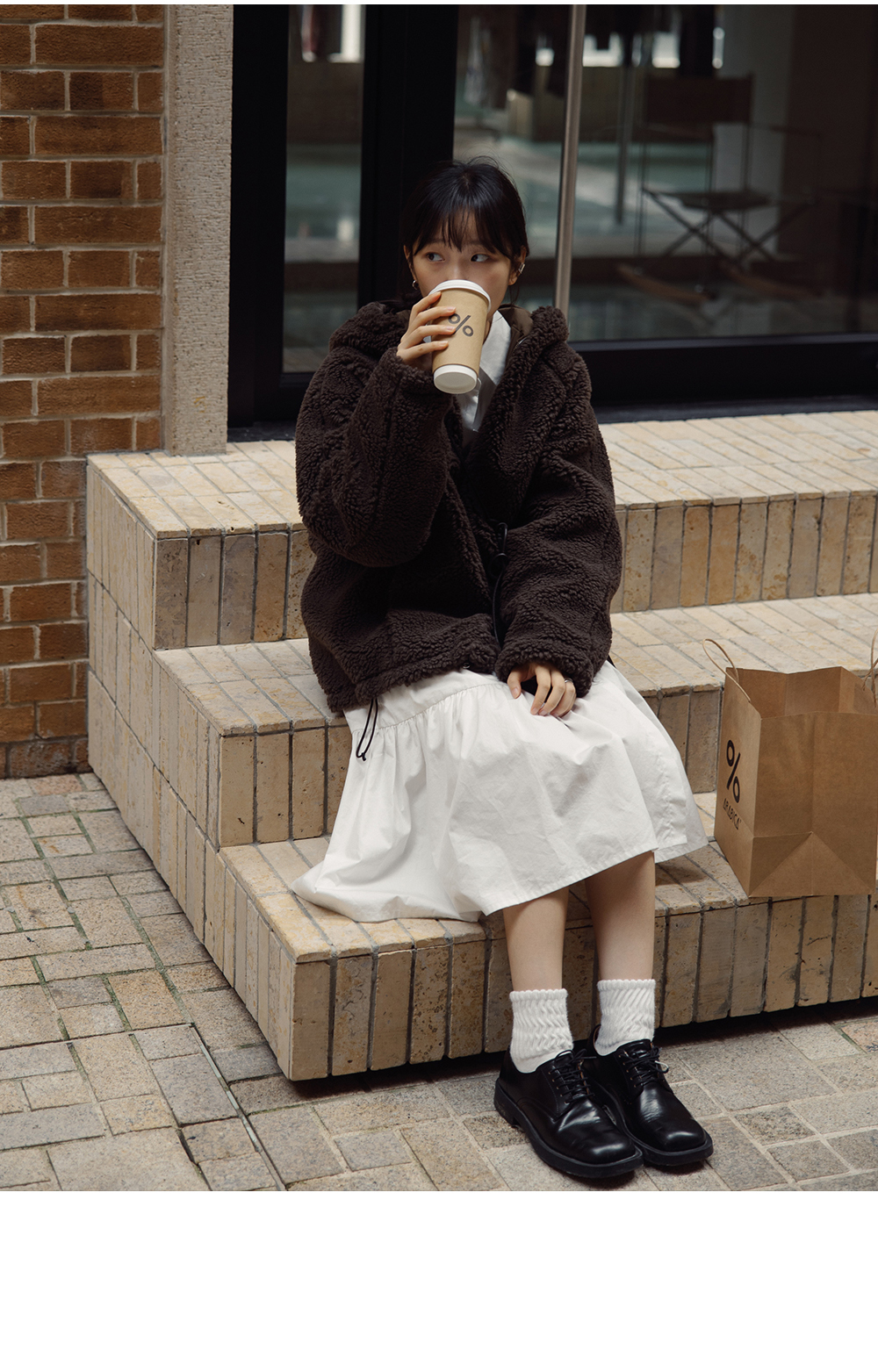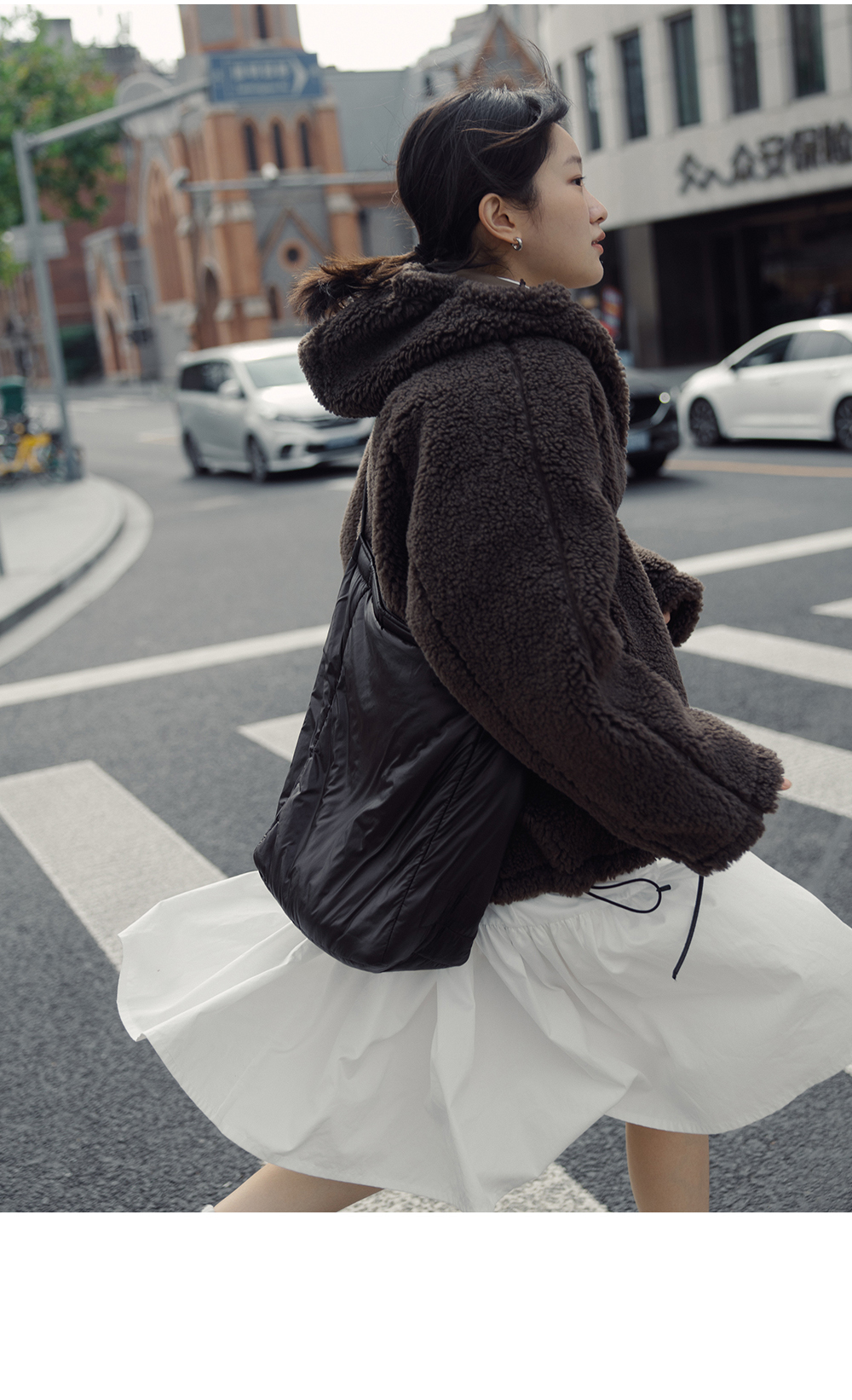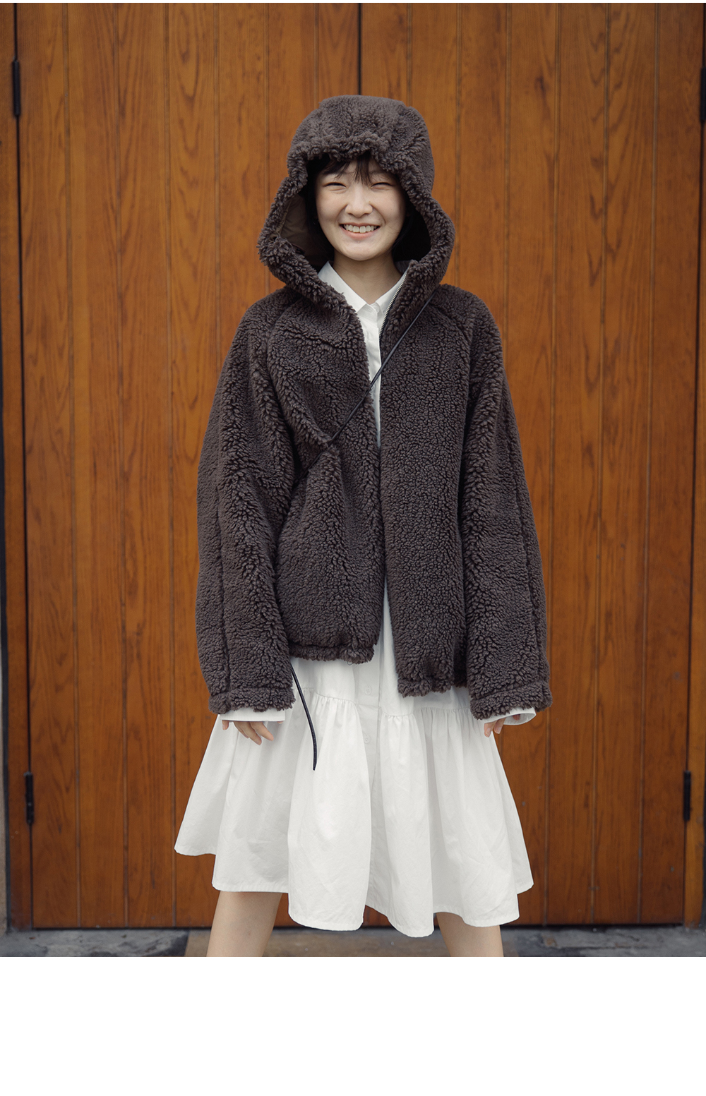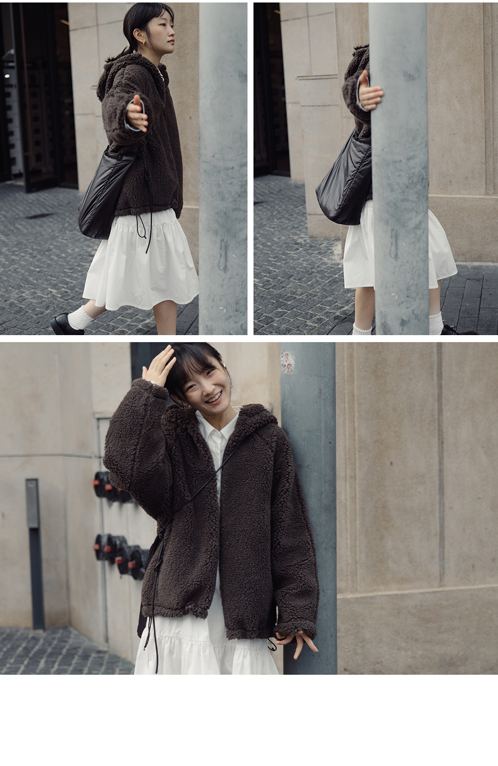步履不停/4D23122C/两面穿棕色羊羔毛保暖开衫外套上衣