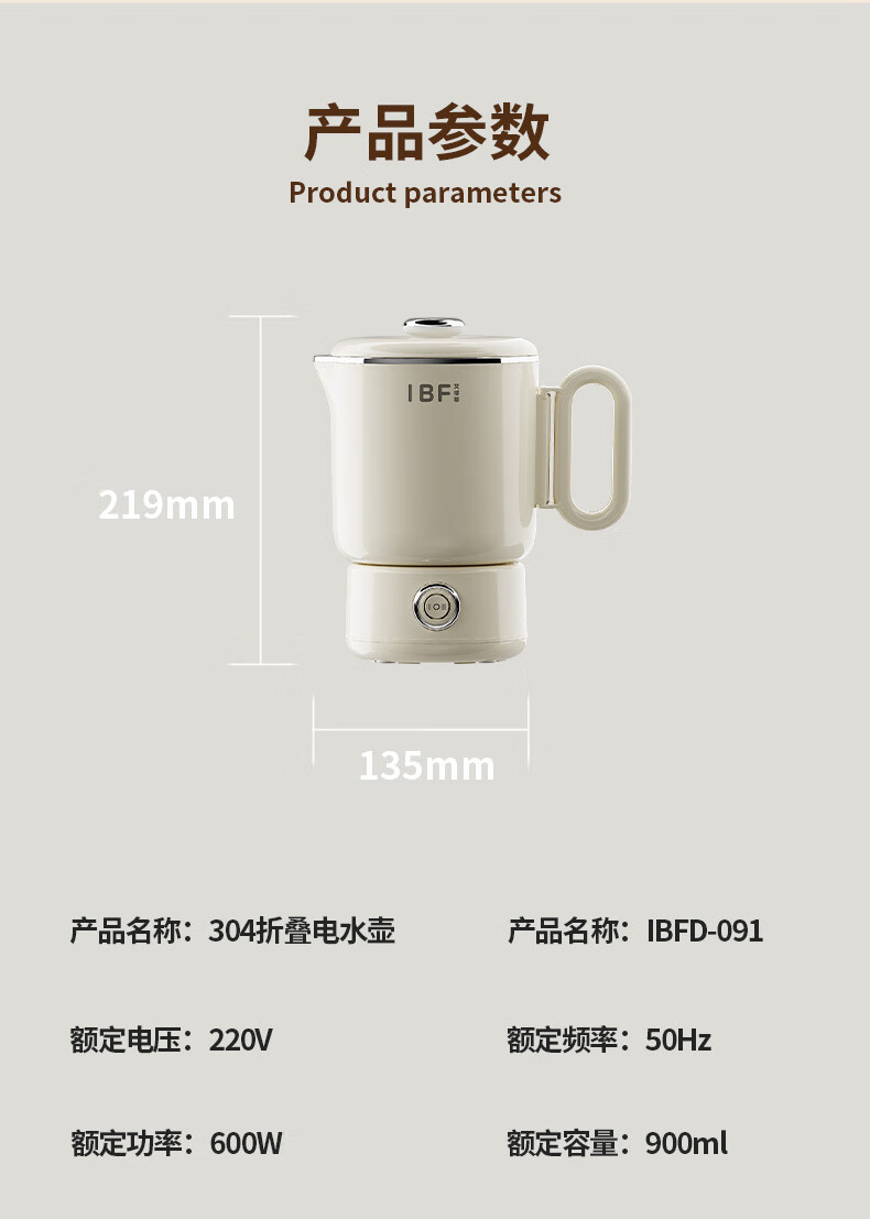IBF艾博菲艾博菲百宝箱折叠304电水壶_0.9L【K】