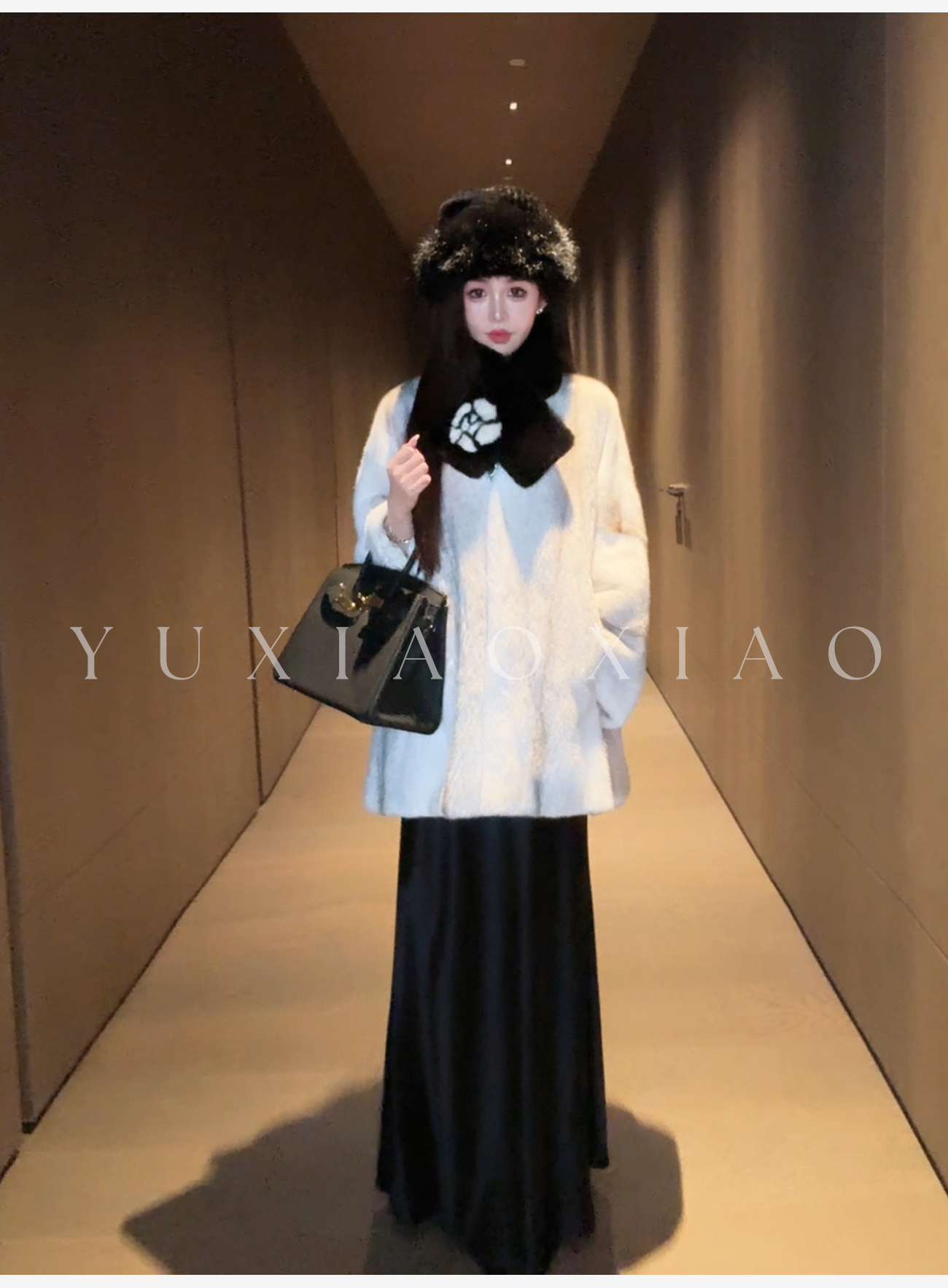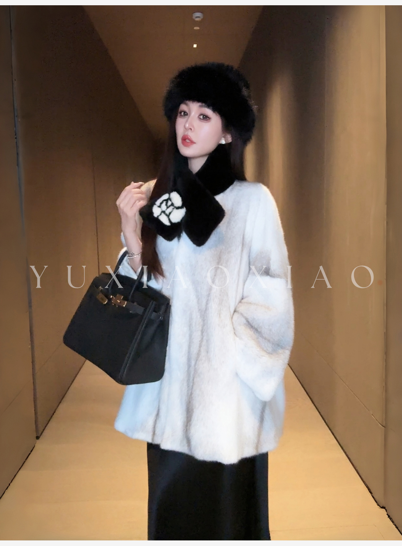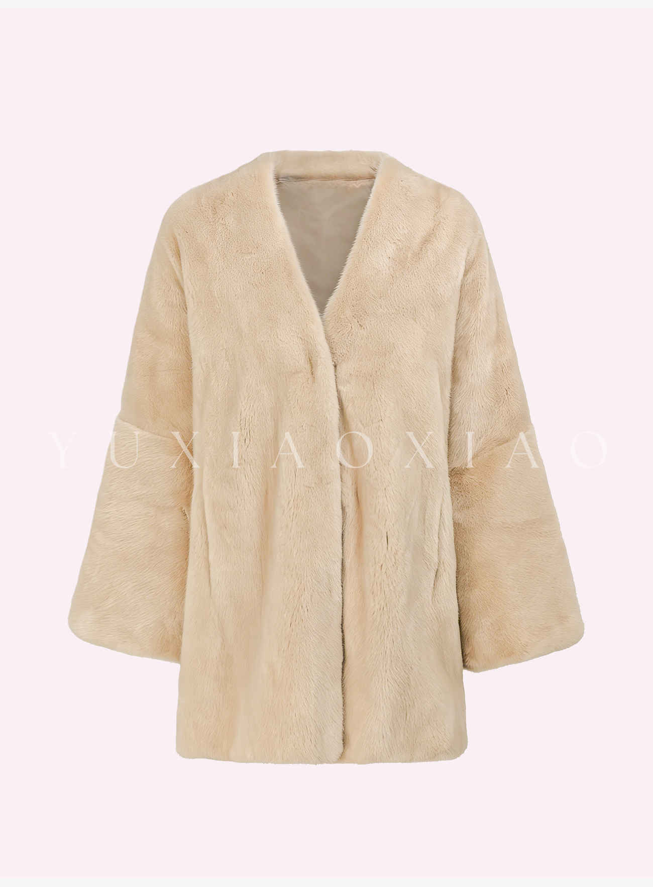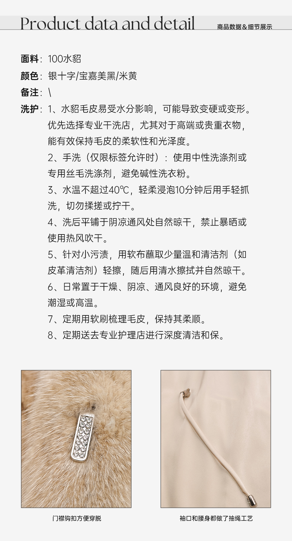余潇潇【新贵印象】轻奢短二本色水貂毛腰身袖口抽绳V领皮草外套