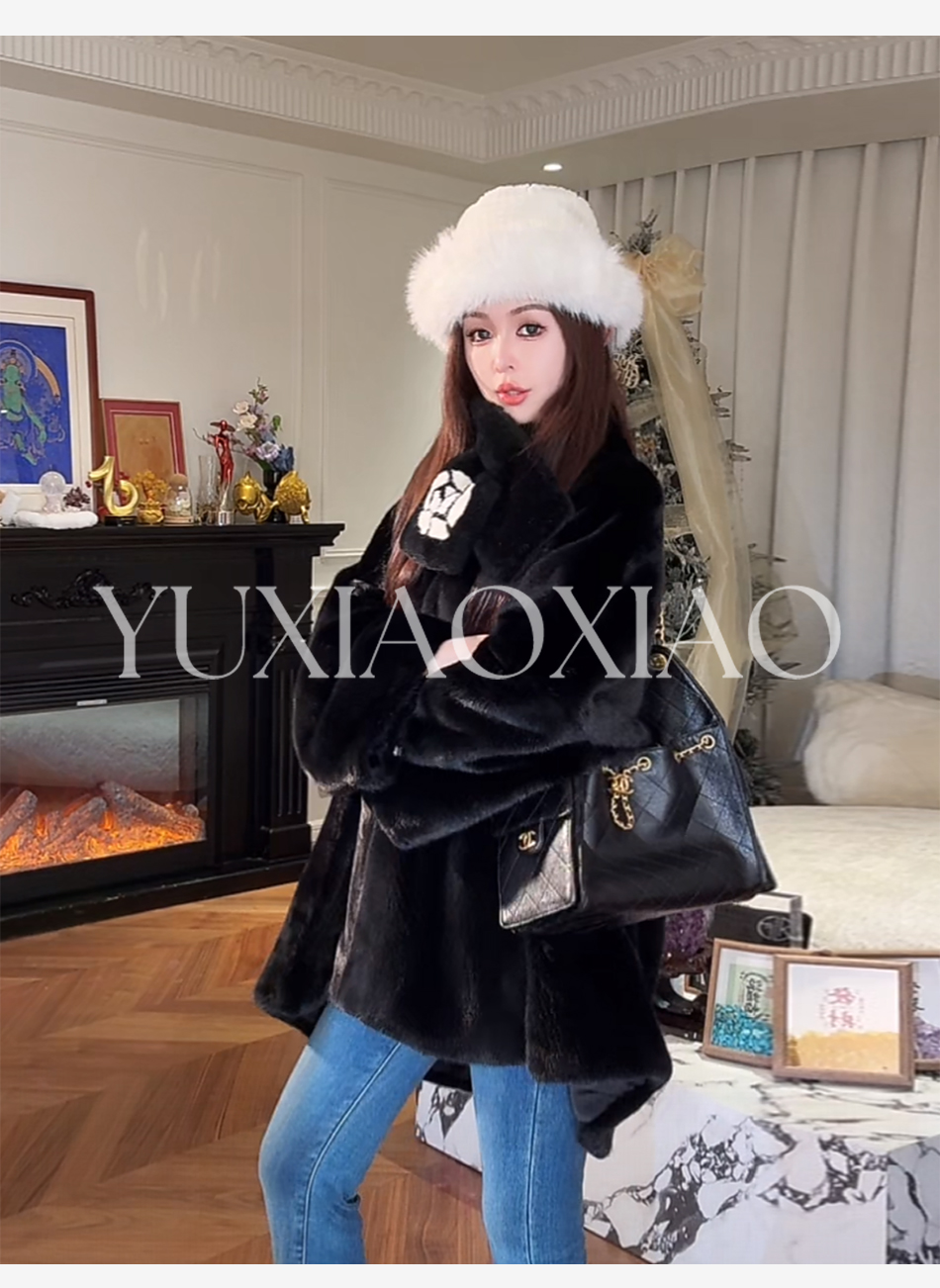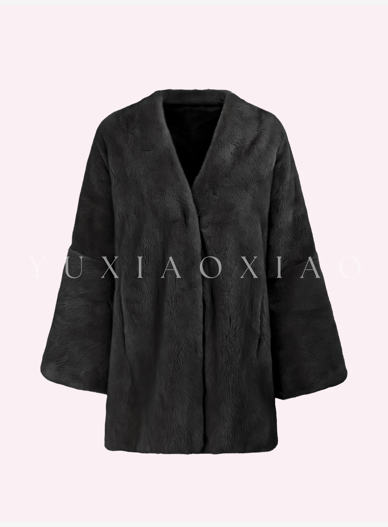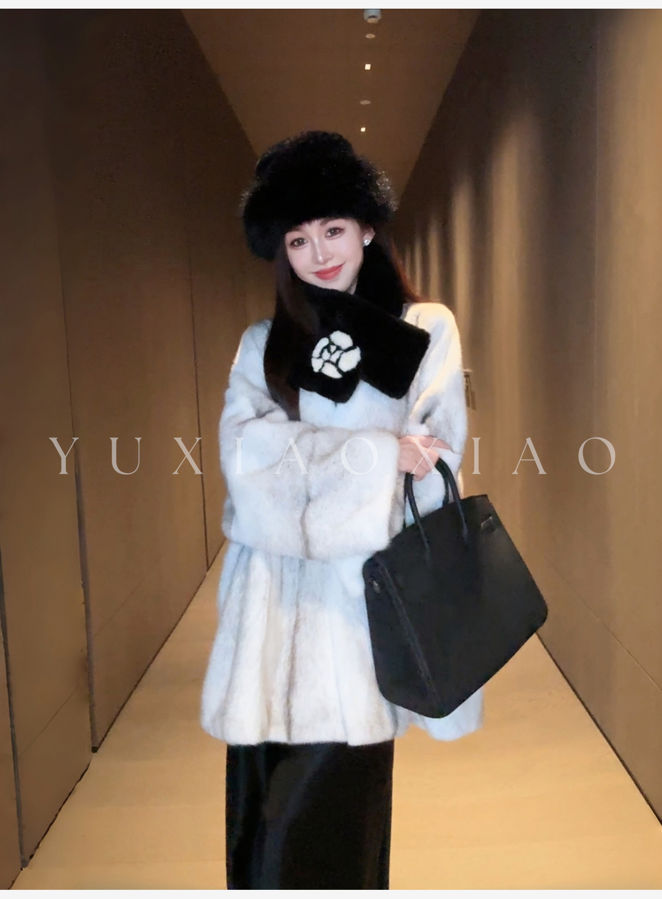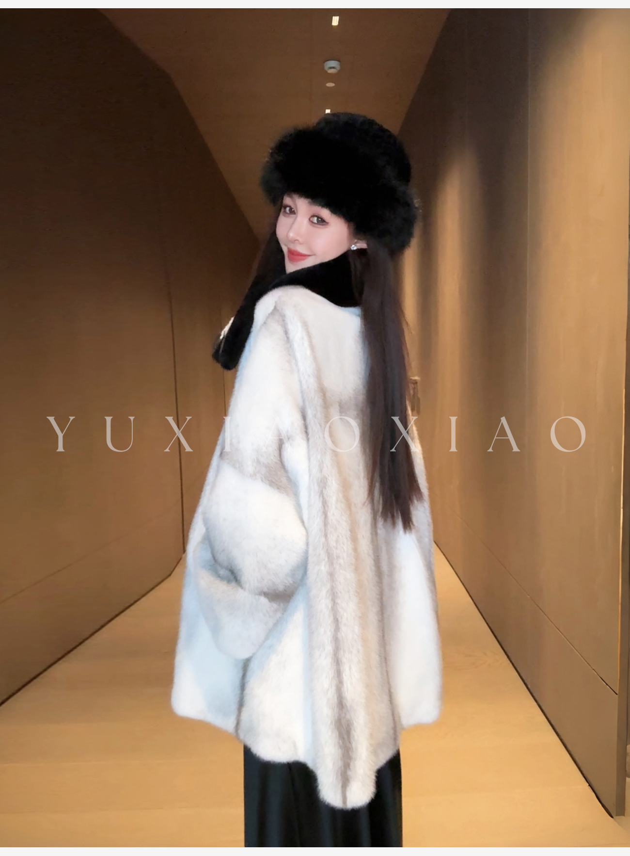 余潇潇【新贵印象】轻奢短二本色水貂毛腰身袖口抽绳V领皮草外套