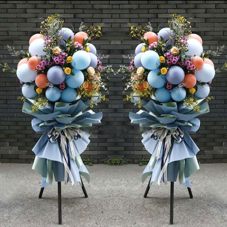 花材:气球,玫瑰,雏菊,情人草,尤加利,三角架花篮(3067)